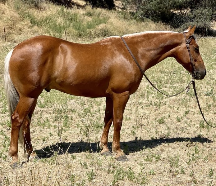 ONLINE AUCTION Place your bids at www.PlatinumEquineAuction.com Starting Bid $3500 Auction ends July 28th, 2024 Need a new saddle? Check out White Rock Saddles on our website or Facebook! Let me introduce you to the most beautiful horse you have ever seen. Herbie is fun size for sure. Not only is he jaw dropping gorgeous but rides like a dream. He’s 13.3HH and 7 years old making him easy for anyone to mount. Herbie is like a little Mac tuck with his huge hip and deep girth. Herbie is broke will turn with the touch of a rein, move off leg cues and is very responsive. He lopes nice easy, correct circles. Herbie is easy to navigate making him diverse for all types of riders. He is very safe and confident in most any situation. He will be a show stopper out on the trail or in the arena. Herbie has been used on the ranch and will handle a days work no problem. He’s cowy and confident and has had top hand training. He has branded and been started in the roping pen and is coming along nicely. He is a trail connoisseur. He will fallow the narrowest trail and be sure footed. He crosses water, logs, brush, and has encountered lots of wild animals. He is good to be around super gentle and friendly. He has a good foward movement and substance to him. Herbie gets attention anywhere he goes with his deep golden color and blonde mane and tail. Herbies has done trail obstacles and maintaines his gentle disposition. He has been to town giving him real world experiences with motorcyclists, sidewalks, bridges, dogs, trains and has proven to be solid. He is super out on the trail and will ride in a group setting or take a him out alone and he’s ready for any adventure. He tacks up easy and is quiet and patient. Herbie clips, ties, bathes and is good for the farrier and vet appointments. This horse is will steel the show no matter where you take him with his beauty. He is the definition of a horse with great confirmation. Herbie can be your best friend and trail partner or take him to the arena for some fun. He will be the prettiest horse anywhere you take him and you will be the envy of everyone. This boy will take the worry out of riding with his calm and cool disposition. Don’t miss this rare opportunity to own the classiest horse around. Please contact Longhorn Ranch Dina 831-537-1915 located in Paicines, CA. ONLINE AUCTION Place your bids at www.PlatinumEquineAuction.com Starting Bid $3500 Auction ends July 28th, 2024 Need a new saddle? Check out White Rock Saddles on our website or Facebook!