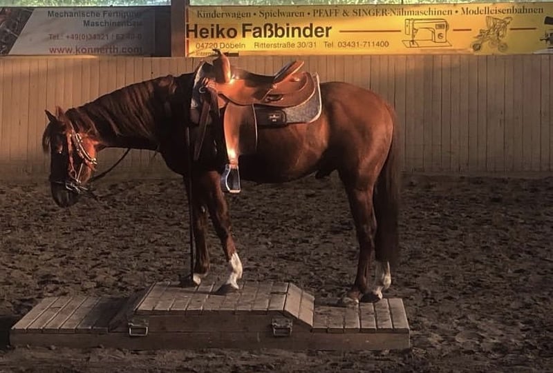 Ich verkaufe einen 9 jährigen Quaterhorse Wallach Er wurde mit 4 Jahren als Westernpferd angeritten, seit dem aber nur sporadisch gearbeitet. Er wird also angeritten abgegeben. Er lernt allerdings sehr schnell und hat viel Spaß an der Arbeit vom Boden aus und geht problemlos auf den Hänger. Er wäre sowohl als Beisteller oder aber auch als Freizeitpartner vorstellbar. Im Moment steht er mit einem Wallach zusammen. Er ist ca 140cm groß und kein Lastenträger. Charakterlich ist er ein totaler Schatz und manchmal ein bisschen frech, wie sich das für ein Pony gehört. Er wird nur in ein 5 Sterne Zuhause abgegeben. Es kann einiges an Zubehör mitgegeben werden.