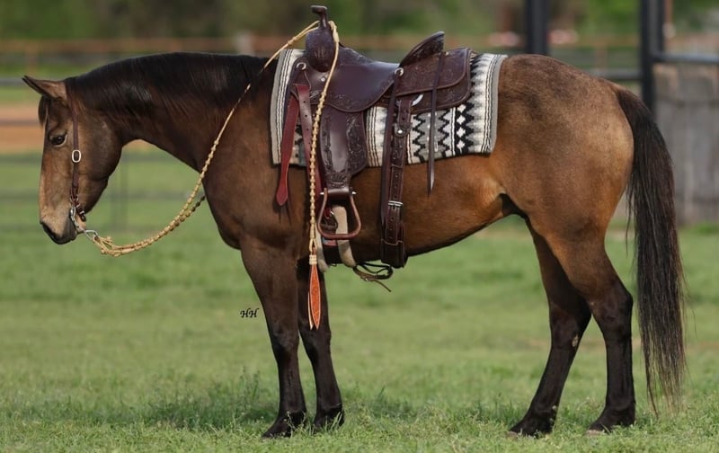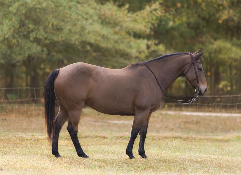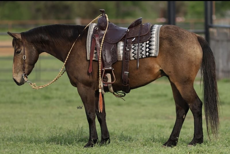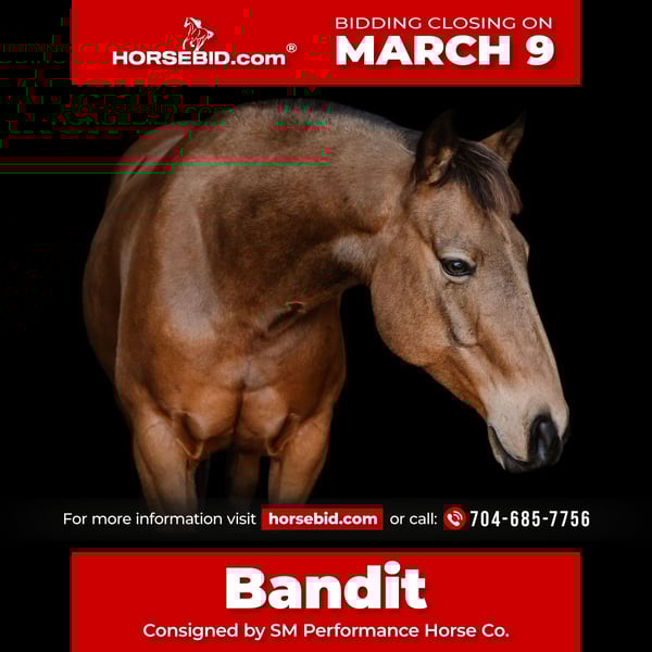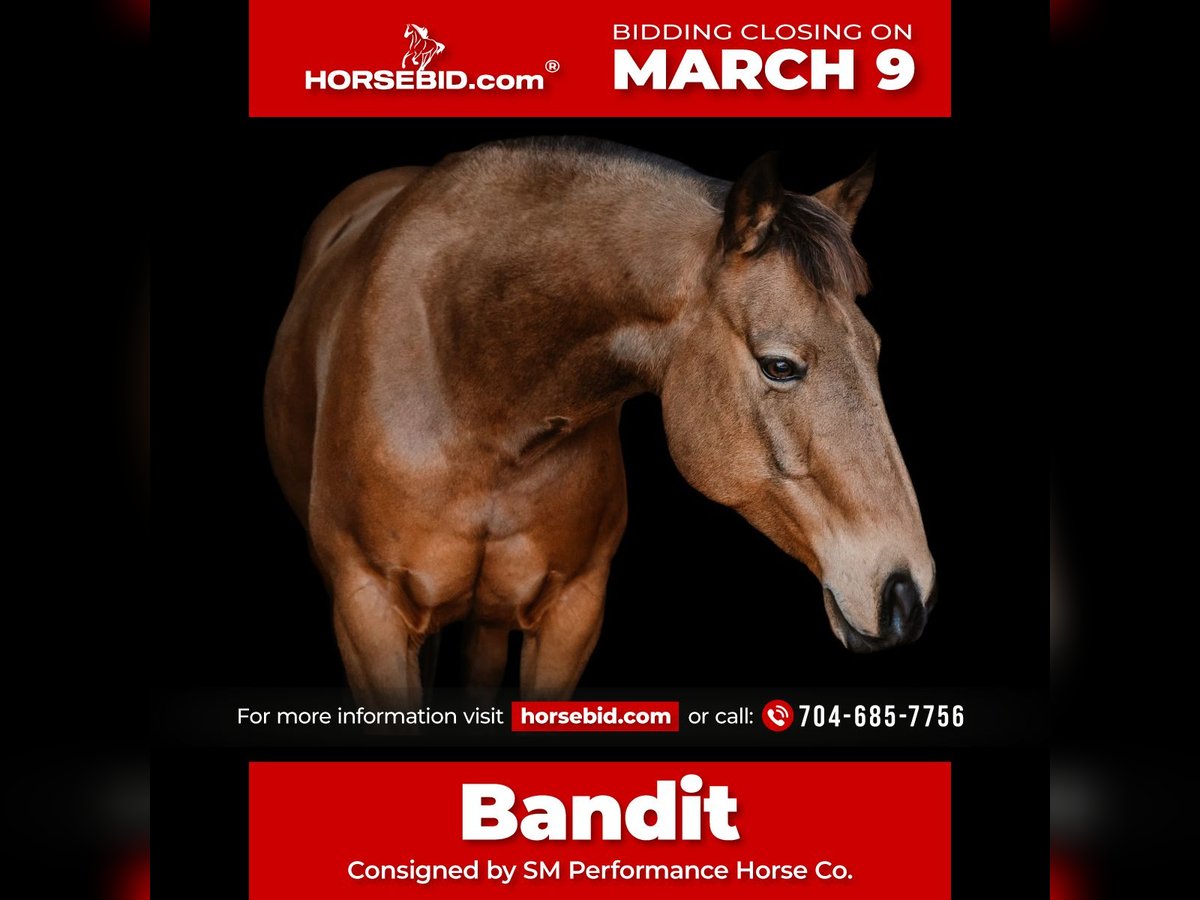 ℳ𝒶𝓇𝒸𝒽 ♦️𝐑𝐈𝐃𝐄𝐑'𝐒 𝐂𝐇𝐎𝐈𝐂𝐄♦️ Happening now thru MONDAY | MARCH 9th - Available EXCLUSIVELY on HorseBid's website! For more details and to register visit: www.Horsebid.com CONSIGNOR CONTACT: SM Performance Horse Co. 704-685-7756 LOCATION: Cherryville, NC BREED: Quarter Horse REGISTERED: Yes REGISTERED NAME: Boons Golden Freckle COLOR: Bucksin HEIGHT: 14.2 AGE: 9 GENDER: Gelding Allow us to present Boons Golden Freckle, also known as Bandit. Bandit is a 14.2hh AQHA buckskin gelding with a solid ranch foundation and a willing mind. Bandit was born and raised on the Open Spear Ranch in Montana, known for their breeding program which focuses on strong foundation bloodlines that are good for ranch work, reining, cutting, and roping. Bandit has spent his life doing real ranch work such as gathering, sorting, doctoring, and checking fences. He is sure footed, doesn’t blink an eye at rough terrain or wildlife and will cross anything in his path. This gelding has a nice handle, moves off leg pressure, and will walk with purpose. Bandit is quiet on the ground, easy to load, stands tied for the farrier and is great with other horses or riding alone. Bandit is the kind of gelding that can do it all with a good mind and a great attitude and is the right size for a youth or adult rider looking for a smaller, handy mount with a ton of experience. Whether you’re putting in long days at the ranch, easing down a trail, or just wanting something dependable to swing a leg over, he’s the type that’ll give you his best every time. We’ve owned Bandit for about 2 years and he has been nothing shy of exceptional throughout his time with us. If you have any more questions please feel free to give us a call or come try him out!