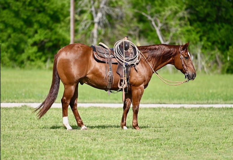 𝐍𝐀𝐓𝐄 𝐁𝐀𝐋𝐋𝐄𝐑𝐈𝐍𝐎 𝐇𝐎𝐑𝐒𝐄 𝐂𝐎'𝐬 ★ ℝ𝕀𝔸𝕋𝔸 𝔹𝕌ℂ𝕂𝕃𝔼 ★ 𝑺𝒉𝒐𝒘𝒄𝒂𝒔𝒆 Happening now thru SATURDAY | FEBRUARY 28th - Available EXCLUSIVELY on HorseBid's website! For more details and to register visit: www.Horsebid.com CONSIGNOR CONTACT: Nate Ballerino Horse Co 254-716-9588 LOCATION: Waco, TX BREED: Quarter Horse REGISTERED: Yes REGISTERED NAME: Cowboy Capital COLOR: Sorrel HEIGHT: 14.2 AGE: 9 GENDER: Gelding If you’re looking for GENTLE, TRUE, TRIED & TRAINED . . . Do yourself a favor and stop scrolling. Cowboy Capitol aka BOYD is a proven NRCHA money earner ($4,742) with an 8th-place finish in the Limited Open at the NRCHA Futurity. Sired by METALLIC CAT, this gelding is loaded with talent, heart, and try. Boyd lead departs - changes - spins and slides whether he’s bridled/saddled or bridleless & bareback. Leave him off for months on end, and step right on him. Boyd has been roped on in the arena & outside extensively on the ranch doctoring sick cattle. We’ve used him dragging calves to the fire, sorting pairs and loading trucks. Boyd will pack any level rider in the branding pen, out on the trail or in the arena. Throw your company on him and let them work the flag on Boyd, he is all around a solid citizen. Boyd is also a finished heel horse that’s been hauled from the jackpots to the World Series ropings. Cinch him in half, hop on, and he’s honest, tried, and ready for kids or anyone you put on him. If you’re looking for one to show in the low level cow horse events, ranch riding or versatility, or cuttings, this gelding will do it all above average and doesn’t need a pilot to win. Contact Nate Ballerino at 254-716-9588 for more info.