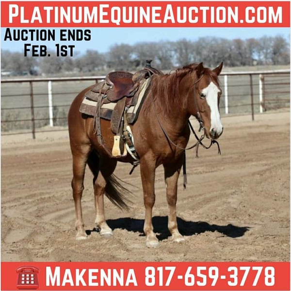 ONLINE AUCTION Place your bids at www.PlatinumEquineAuction.com Starting Bid $3500 Auction ends February 1st, 2026 Need a new saddle? Check out White Rock Saddles on our website or Facebook Meet Marshmallow , a 9-year-old sorrel gelding standing 14.3 hands tall and every bit as handsome as he is fun to ride. He’s the kind of horse that makes you want to saddle up and go, whether it’s for a relaxing evening ride or a full day out on the trails. Out on the trails, marshmallow really shines. He’s confident, surefooted, and happy to lead or follow. He handles new country with ease, crosses obstacles willingly, and rides out alone or in a group. He’s the type you can trust to take care of you while still giving you that fun, forward ride that makes every trip enjoyable. Marshmallow is a well-rounded, versatile gelding with plenty of life in him. In the arena, he rides around soft and responsive. He’s been rode English as well and makes it super fun! If you’re looking for a good-minded, flashy gelding who’s safe, reliable, and fun, Titan is the total package. He’s a true all-around partner with plenty of heart and the kind of looks that will turn heads wherever he goes. We are located in ♦️Mineral Wells Texas♦️but have reputable haulers that go all over the country, including Hawaii and Canada. Give me a call or text and I’d be happy to answer any questions! Makenna hartzel 817-659-3778. ONLINE AUCTION Place your bids at www.PlatinumEquineAuction.com Starting Bid $3500 Auction ends February 1st, 2026 Need a new saddle? Check out White Rock Saddles on our website or Facebook