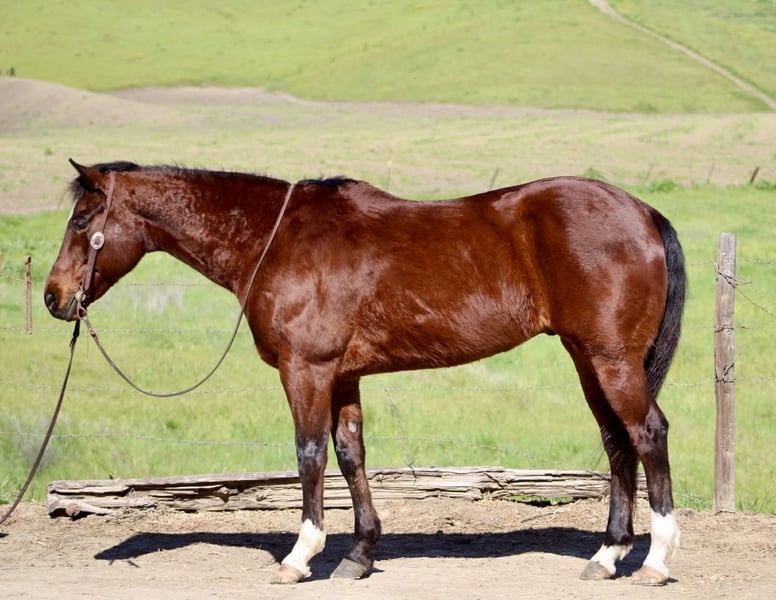 Cavallo Quarter Horse bay di 9 anni, estremamente gentile, adatto per roping e lavoro in ranch!