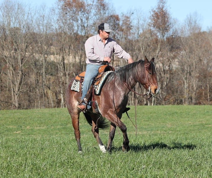 ONLINE AUCTION Place your bids at www.PlatinumEquineAuction.com Starting Bid $3500 Auction ends November 24th, 2024 Need a new saddle? Check out White Rock Saddles on our website or Facebook! Cats Mackeroany is a 7-year-old, 15H, Bay Roan Gelding with a snip rear socks and a “skunk tail”. He is registered AQHA and has an old scshool pedigree that you don’t see on younger horses anymore being a grandson of Doc Olena on the top and going back to him on the bottom. Cat is a true ranch horse and if you’ve got a job to do and want a horse that will help you do it right, the work will be easy with guy! Cat will go anywhere that you point him whether that is steep slopes, over deadfall, across rivers or rough terrain, he handles it with ease! He is a seasoned ranch horse that has been used at brandings, he has pasture roped, has been out of the box on the head side, he has loaded trucks and done team sortings. I had him in Ohio last week catching 25 wild longhorns. No matter what happens Cat is there to help you and he will put you in the place that you need to be in order to get a rope on one. Cat lopes nice circles, he is truly one hand broke, he spins around both ways, slide stops, backs and sidepasses. He requires no maintenance and stays sound even with hard work. For more info contact Lucky 13 Equine Lysandra 765-717-2041 or Matt 765-698-4655 Located in Brodhead, KY. ONLINE AUCTION Place your bids at www.PlatinumEquineAuction.com Starting Bid $3500 Auction ends November 24th, 2024 Need a new saddle? Check out White Rock Saddles on our website or Facebook!