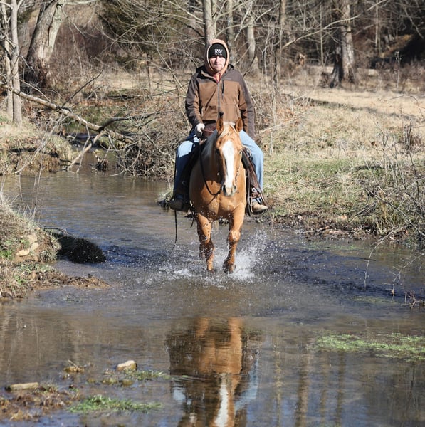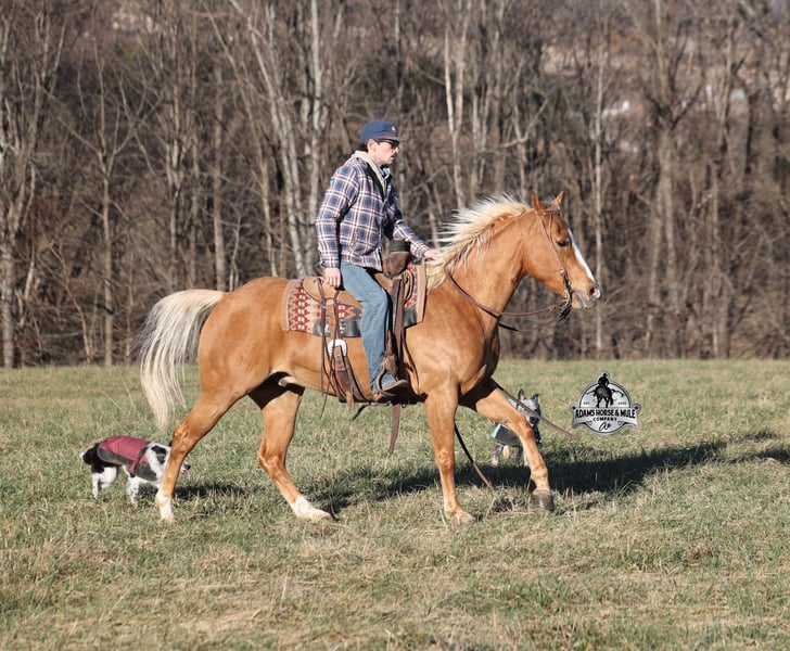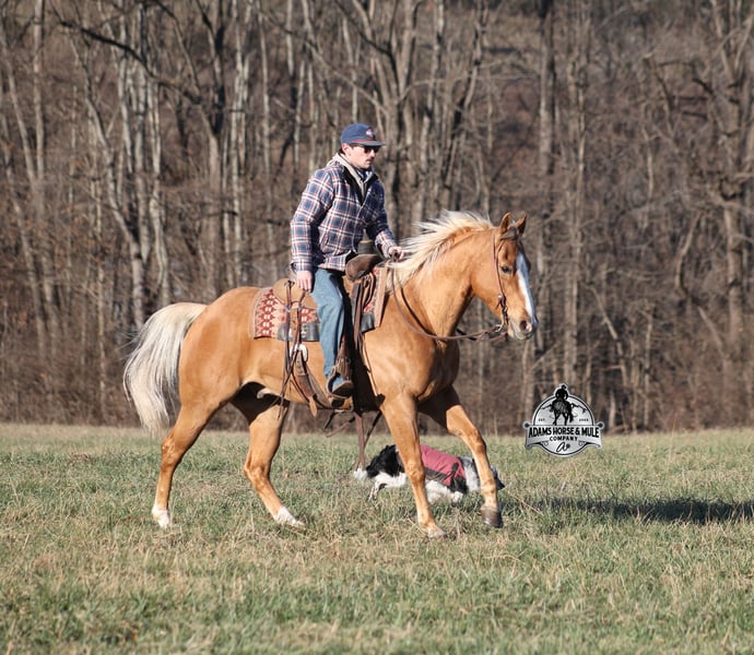 🌟𝑨𝒑𝒓𝒊𝒍 𝐀𝐋𝐋 𝐒𝐓𝐀𝐑 𝐋𝐈𝐍𝐄𝐔𝐏🌟 Happening now thru MONDAY | APRIL 6th - Available EXCLUSIVELY on HorseBid's website! For more details and to register visit: www.Horsebid.com CONSIGNOR CONTACT: Eric Adams 606-308-2461 LOCATION: Mt. Vernon, KY BREED: Quarter Horse REGISTERED: No REGISTERED NAME: Amarillo COLOR: Palomino HEIGHT: 15 AGE: 9 GENDER: Gelding Amarillo is a well built golden Palomino, gelding, standing 15hh and he is 9 years old. Amarillo has been used around the ranch checking cattle and he has roped and doctored several as well. He knows all about ranch work and is prepared to help you anytime that the situation calls for it! Amarillo loves to just cruise along slow and easy down the trails and he is a horse that anyone will enjoy! He is an excellent trail horse and has been ridden in multiple states from Texas to Kentucky. He will cross creeks, ditches, logs and navigate rough rocky areas. He is safe riding in traffic. He has a smooth jog, a nice lope, has a good stop, turns a circle both ways and backs with ease! Amarillo is a confident horse on the trails and will lead the crew or head out alone with no issues! He has been exposed to all kinds of wildlife such as deer or turkey and will go anywhere that he is asked too. He has been ridden many miles in the mountains and encountered every obstacle possible on the trail. He will go up or down even the steepest slopes, across deep creeks, over downed trees, and over all types of rough terrain while still being sure footed. Amarillo is a horse that anyone would be proud to own and one that anyone will love!!! Feel free to call Eric 606-308-2461 with any questions.