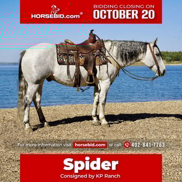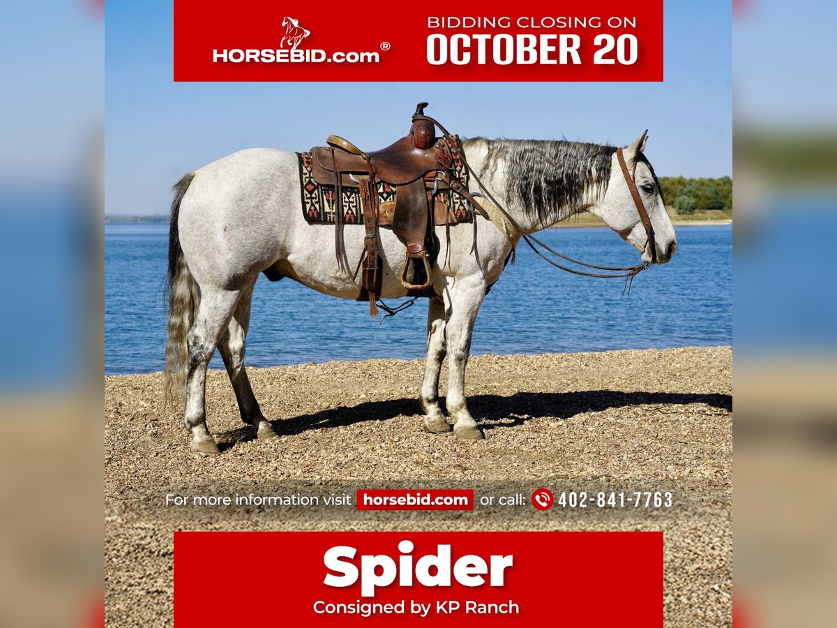 ♦️ 𝐭𝐡𝐞 𝐀𝐌𝐄𝐑𝐈𝐂𝐀𝐍 𝓕𝓪𝓵𝓵 𝓒𝓵𝓪𝓼𝓼𝓲𝓬 ♦️ Happening now thru MONDAY | OCTOBER 20th - Available EXCLUSIVELY on HorseBid's website! For more details and to register visit: www.Horsebid.com CONSIGNOR CONTACT: Kp ranch 402-841-7763 LOCATION: Corsica Sd BREED: Quarter horse REGISTERED: No COLOR: Gray HEIGHT: 15.1 AGE: 8 GENDER: Gelding Spider is an exceptional 8 year old 15.1 hand gray gelding that is a finished using horse that’s done every aspect of work. He is very handy in the bridle will be a horseman’s best friend. Top notch gelding that anyone would enjoy to have in there barn. Call or text 402-841-7763