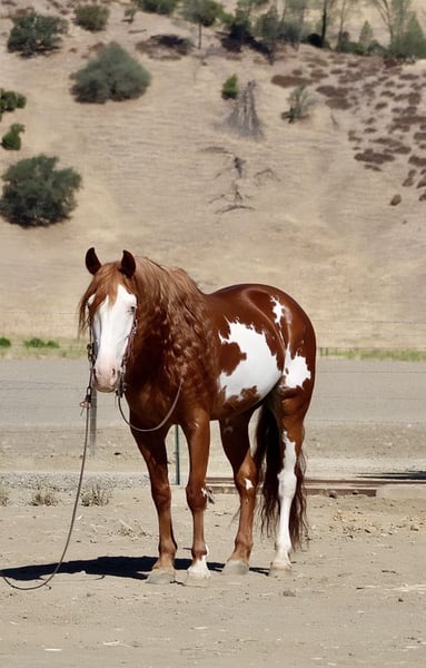 ONLINE AUCTION Place your bids at www.PlatinumEquineAuction.com Starting Bid $3500 Auction ends July 27th 2025 Need a new saddle? Check out White Rock Saddles on our website or Facebook If any horse was ever born to be famous, it’s this one. Axl Rose is a stunning 15.1-hand, 8-year-old Paint/Draft cross gelding with this beautiful long, flowing mane and tail and a presence that stops people in their tracks. He’s the kind of horse who turns heads wherever he goes—you’ll feel like he should be signing autographs! Axl Rose is as gentle as he is eye-catching. With his calm, cool attitude and go-anywhere mindset, he’s a true pleasure to ride. He’s been in multiple parades and handled them like a pro—unbothered by sirens, crowds, honking semis, or heavy traffic. Nothing rattles this guy. In the arena, Axl Rose moves with grace and ease. He lopes slow and soft, carries himself in a relaxed frame, has a solid stop, and a nice ranch-style turnaround.He is one of the smoothest horses we have ever rode. He has also been used to gather,rope and is so eager and willing to do whatever you ask, Whether you’re out to do a job on the ranch or just enjoy the ride, he’s right there with you, giving his all. Out on the trail, Axl is a steady and confident partner. He’s been across all types of terrain, through creeks, over bridges, and calmly walks along without a fuss. He has seen all sorts of obstacles and will conquer bridges, tires and walkovers with ease he has also carried flags,tarps and bouncy balls without a care in the world. He has a great brain and a kind heart, making him a dream for any level of rider. Axl is also incredibly friendly—he’ll greet you at the gate, follow you around like a puppy, and loves attention. He clips, bathes, and ties with ease, stands tied anywhere, is great in both stall and pasture, and hauls like a seasoned traveler. If you’re looking for a family-safe, drop-dead gorgeous, sweet-as-they-come gelding who’ll be the talk of the barn, Axl Rose is your man. Located in Paicines, CA. Contact Dina with Longhorn Ranch 831-537-1915 with any questions. ONLINE AUCTION Place your bids at www.PlatinumEquineAuction.com Starting Bid $3500 Auction ends July 27th 2025 Need a new saddle? Check out White Rock Saddles on our website or Facebook