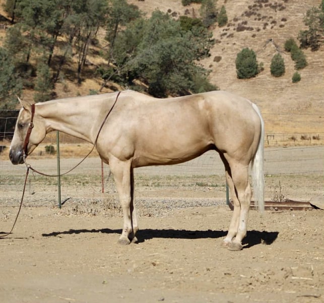 ONLINE AUCTION Place your bids at www.PlatinumEquineAuction.com Starting Bid $3500 Auction ends October 5th, 2025 Need a new saddle? Check out White Rock Saddles on our website or Facebook 777 Jackpot – The Winning Ticket Palomino!!! Every once in a while, you hit the jackpot — and this horse is exactly that. Meet 777 Jackpot, an 8-year-old, 15.1-hand golden palomino gelding who is as gentle, kind, and safe as they come. If you’ve been waiting for a mount that feels like striking gold every time you saddle up, this is the one you won’t want to pass by. On the trail, Jackpot is in a class of his own. He’s the kind of gelding you can point at anything — water crossings, steep hills, bridges, brush, logs, or rocky terrain — and he’ll step through with confidence and ease. Cars, semis, bicycles, wildlife jumping out of the brush — none of it bothers him. He’ll ride out alone with quiet confidence or settle into a group, happy to lead the way or follow along in the back. He’s steady, sure-footed, and always willing, making him the ultimate trail partner. Jackpot is just as steady in other settings. He’s been used on the ranch to drag calves, move cattle, and handle honest work without fuss. In the arena, he rides low-headed and collected, picks up his leads with ease, has a smooth turnaround, and stops and backs willingly. He’s correct, forgiving, and makes riding fun and simple for any rider. What sets him apart is just how unflappable he is. Tarps, bouncy balls, flags, traffic, bridges, wildlife — none of it phases him. He’ll ride bridleless, go through water, and step over or around any obstacle you point him at with a calm, willing attitude. On ground, he’s as easy as they come — exceptionally friendly, ties, hauls, saddles, and bridles without a fuss, and stands well for the farrier and vet. Jackpot isn’t just another pretty palomino — he’s one of those rare geldings that are just good no matter what you ask of him. If you’ve been searching for a safe, seasoned, and reliable trail horse who also shines in the arena and on the ranch, 777 Jackpot is your winning ticket. Contact: Dina with Longhorn Ranch 831-537-1915 Located in Paicines, CA with shipping available anywhere in the US. ONLINE AUCTION Place your bids at www.PlatinumEquineAuction.com Starting Bid $3500 Auction ends October 5th, 2025 Need a new saddle? Check out White Rock Saddles on our website or Facebook