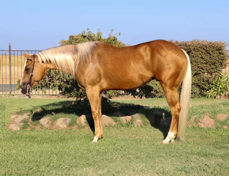 ONLINE AUCTION Place your bids at www.PlatinumEquineAuction.com Starting Bid $3500 Auction ends September 15th, 2024 Need a new saddle? Check out White Rock Saddles on our website or Facebook! Meet Cheddar, a 7 year-old 15.1 hands absolutely stunning Palomino gelding that is sure to turn heads wherever he goes. With his striking dark chocolate Palomino coat and a flowing white mane and tail, Cheddar is the epitome of “show ring gorgeous.” If you’re searching for a showstopper, look no further! Cheddar has spent most of his life in the arena and is exceptionally broke. He knows his leads with ease, slide stops, and spins, yet his slow, smooth gaits make for a comfortable ride. Cheddar has even packed around kids in the arena without any issues, making him a versatile choice. Whether you’re riding him daily, weekly, or even monthly, Cheddar takes sitting well and is the same horse every time you step on him. Not just an arena horse, Cheddar has been introduced to obstacles and performed well. He’s been started on the dummy, roped on the ranch, and has experience gathering cattle in the hills. Though he’s spent much of his life in the arena and could use more exposure on the trails, he’s not spooky—he’s just curious. He’s comfortable around cars, traffic, and handles hills, creeks, ponds, and logs with ease. Cheddar has all the qualities to excel in the show ring with his stunning looks and smooth, slow, comfortable gaits. Whether you’re looking for a horse to take into the show pen or one to enjoy on the ranch, Cheddar has the potential to be your next all-around star. Cheddar is up to date on shots, worming, and shoes. He stands great for farrier, saddling, baths. He loads in the trailer like a champ. He is ready to head into any direction you want to take him! Don’t miss out on this young exceptional gelding! Contact us today at KW Ranch and Performance Horses Kamryn 530-852-2032 to learn more about Cheddar and schedule a visit in Pleasant Grove, CA. ONLINE AUCTION Place your bids at www.PlatinumEquineAuction.com Starting Bid $3500 Auction ends September 15th, 2024 Need a new saddle? Check out White Rock Saddles on our website or Facebook!