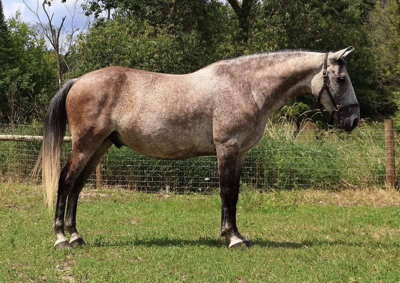 ONLINE AUCTION Place your bids at www.PlatinumEquineAuction.com Starting Bid $3500 Auction ends September 15th, 2024 Need a new saddle? Check out White Rock Saddles on our website or Facebook! We are proud to introduce Valentino! He is a stunning 7 year old gelding. He is covered head to toe in dapples. He is an Andalusian QH cross who stands at 15.2hh. Valentino has lovely movement. He has a great walk, a floaty trot, and an adjustable canter. He has the most beautiful mane and tail. Valentino is the whole package with his noble appearance, intelligent mind, and inquisitive demeanor. He bonds deeply with his person. Valentino is the type who will work all day, whether it’s in town, in the arena, or on the trails. He has great hooves and a thick bone structure. Valentino was started on the ranch working the cows, completing farm chores and checking fences. He knows how to move on and off seat and leg pressure. He slides right into his stop. He is trained through 1st level dressage and knows all lateral movements. Valentino has recently been started over fences and attended a hunter pace. He’s absolutely fantastic out in the fields and will jump in beautiful form. He has also done quite a few trail obstacle courses and navigates them with ease and finesse. Valentino has the brains, the beauty the sense, and versatility to excel in just about anything! He is that all around horse! Located in Howell Michigan 48855. Call Ellesse Schwartz for more information 248-390-6831. ONLINE AUCTION Place your bids at www.PlatinumEquineAuction.com Starting Bid $3500 Auction ends September 15th, 2024 Need a new saddle? Check out White Rock Saddles on our website or Facebook!