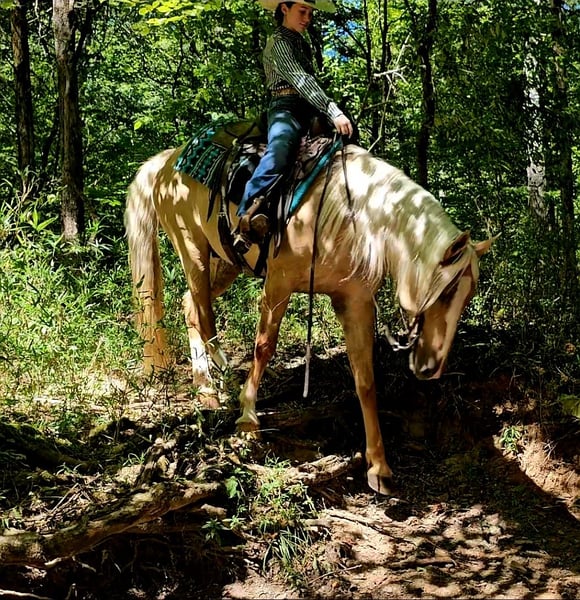 🍂 𝓐𝓾𝓽𝓾𝓶𝓷 𝑨𝑳𝑳 𝑺𝑻𝑨𝑹 𝑳𝑰𝑵𝑬𝑼𝑷 🍂 Happening now thru MONDAY | OCTOBER 6th - Available EXCLUSIVELY on HorseBid's website! For more details and to register visit: www.Horsebid.com CONSIGNOR CONTACT: Pleasant Valley Equine 434-981-3863 LOCATION: Robards KY BREED: Quarter Horse REGISTERED: Yes REGISTERED NAME: Hez A Lil Catty COLOR: Palomino HEIGHT: 15.3 AGE: 8 GENDER: Gelding BROKE, BROKE, BROKE, and SAFE ABSOLUTELY A BLAST TO RIDE. Even if you have no clue how to ride, Justin will make you look like a professional. This sweet gelding has proven himself time & time again for us. We had the privilege of being around Justin for the past 6 years. He's packed me & my 4 year old son on 3 to 4 hour trail rides, & been the Steady Eddie to pony him on his own horse through traffic, parades, & cow catching adventures. He has a calming demeanor that will make the most anxious rider feel at home & safe. Justin has been a big part of my lesson program this summer, teaching kids as young as 6 how to ride. Justin is a seasoned pro. He is currently excelling in Ranch Versatility, 4H, Trail, Western Riding, Ranch Reining, English, Equitation, Lower Level Dressage & going over small jumpes well. Justin will be everything you ever dreamed in a horse and more. He's quiet enough for any level rider, young or old! Not only is he fancy in the arena, but he's a trail horse deluxe. He will pack saddle bags and go anywhere you point him. He has encountered all types of wildlife with no spook or hesitation. If you enjoy working cattle and sorting, Justin handles a cow well. We have used him to get up & pen large herds of cattle with my 4 year old son. Justin stands right under 16 hands and weighs around 1150 lbs. He has a long, beautiful mane & and a thick, pretty tail. He even has a dun stripe & zebra striping on his legs. He's always the first to meet you in the field and can sit for weeks or months without work and be the same horse every time. He's lived most of his life out in the field with a mixed herd, but he enjoys his stall, too. I would consider him a low man in the pecking order. Justin is UTD on shots and coggins. He stands great for the farrier, baths, clips, and loads in and out the trailer with ease. He is currently shod all the way around. We can make arrangements to ship anywhere in the U.S. call today to set up an appointment to take Juston for a test ride. 434-981-3863 ◇ASK US ABOUT OUR GURANTEE ON THIS HORSE