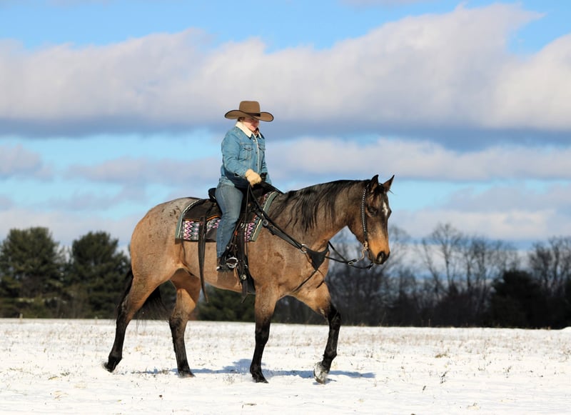 🎄𝐓𝐇𝐄 𝑯𝒐𝒍𝒊𝒅𝒂𝒚 𝐂𝐋𝐀𝐒𝐒𝐈𝐂🎄 Happening now thru MONDAY | DECEMBER 15th - Available EXCLUSIVELY on HorseBid's website! For more details and to register visit: www.Horsebid.com CONSIGNOR CONTACT: LT Equine 724-664-5327 LOCATION: Miola, PA BREED: AQHA REGISTERED: Yes REGISTERED NAME: Magic Senator COLOR: Buckskin Roan HEIGHT: 15.3 AGE: 8 GENDER: Gelding Introducing Senator! He is a registered AQHA gelding that is a very unique Buckskin Roan color. He is a nice tall thick built approximately 15.3 hands tall with nice legs and feet. Senator is a more whoa than go type horse that is a super solid trail horse! He will go out alone or in a group, lead or follow and goes wherever you point him, down thru the river up the steep hills and mud! I have had all level riders on Senator and he’s taken care of everyone! He has been rode English as well over ground poles and small cross rails! He had a nice easy one hand neck rein. Side passes and has a nice low level headset! His trot and lope are smooth and easy to sit! In the past Senator was a ranch horse where he roped and drug cattle. Here he is mostly a trail horse and weekend lesson horse. He will carry a flag and lope off with ease. Senator has a vet check that he passed with flying colors, new front shoes, and a fresh Coggins! For any more questions please call or text me at 724-664-5327, I can do FaceTime video if needed! We can also help arrange shipping. Thank you and have a wonderful day!