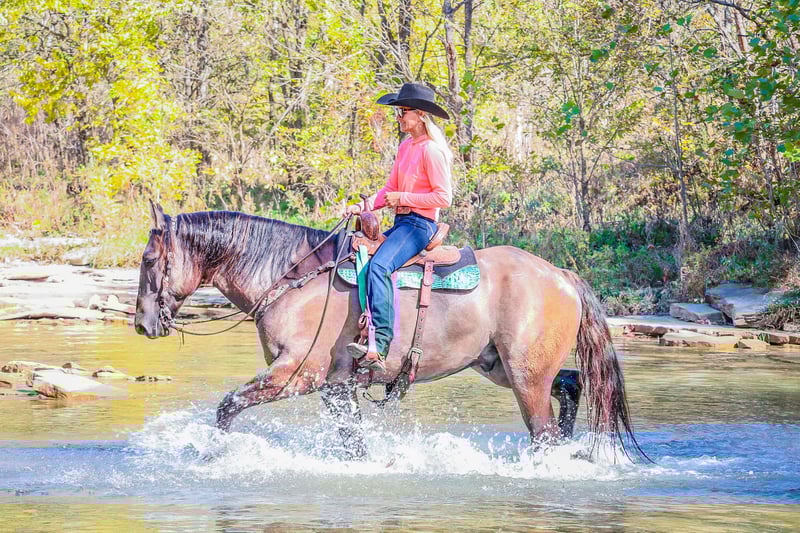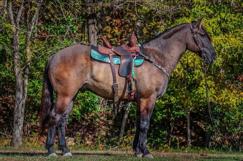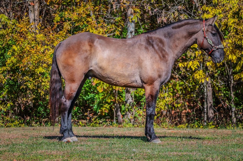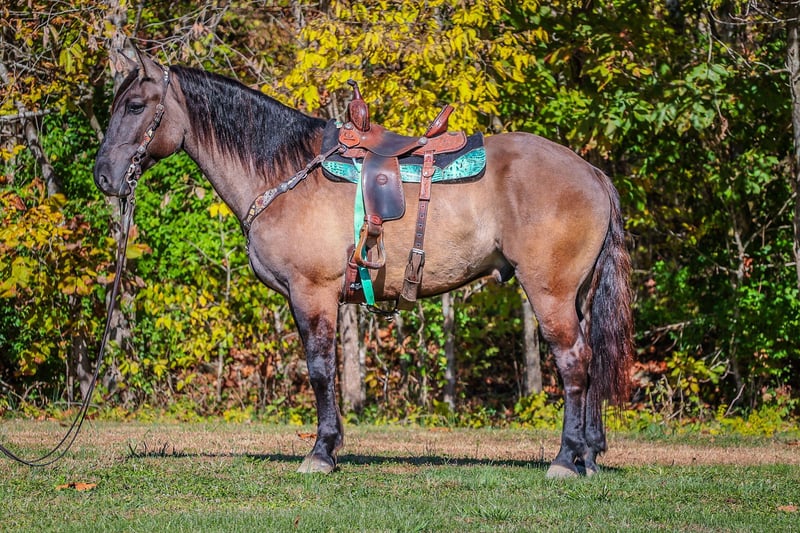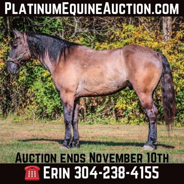 ONLINE AUCTION Place your bids at www.PlatinumEquineAuction.com Starting Bid $3500 Auction ends November 10th, 2024 Need a new saddle? Check out White Rock Saddles on our website or Facebook! This is “LUKE”, a big stout gorgeous PERCHERON QUARTER HORSE CROSSBRED gelding that has been used for ranch work and trail riding. This gelding is handsome, cool, collected, and is the hard to find kind. He stands 16 hands tall and is 7 years old in the prime of his life. He has been ridden in big timber, in the mountains, has been across rivers, and in the deep steep woods. He can carry any size rider all day long. He will ride out alone with no issues. He has been in the arena as well and will lope nice circles and he has a nice soft jog. He will stop nicely on whoa and will back up. He moves off of leg cues and will one hand neck rein. He stands tied, has good ground manners, and gets along well with other horses. He rides low headed and calm. He has been on large rides with many other horses and doesn’t care if he leads the pack or brings up the rear. He is built right, has a good mind, and has lots of outside miles and experience. If you want a big stout GRULLA CROSSBRED with good bone, good feet, and a solid build, check him out. Call HH Horses Erin 304-238-4155 Located in Flemingsburg, KY. ONLINE AUCTION Place your bids at www.PlatinumEquineAuction.com Starting Bid $3500 Auction ends November 10th, 2024 Need a new saddle? Check out White Rock Saddles on our website or Facebook!