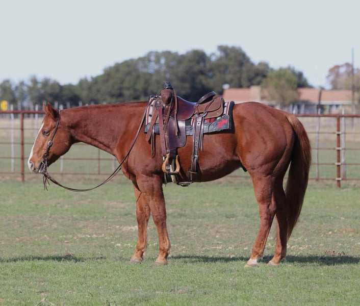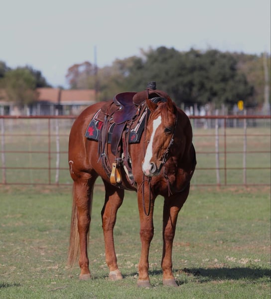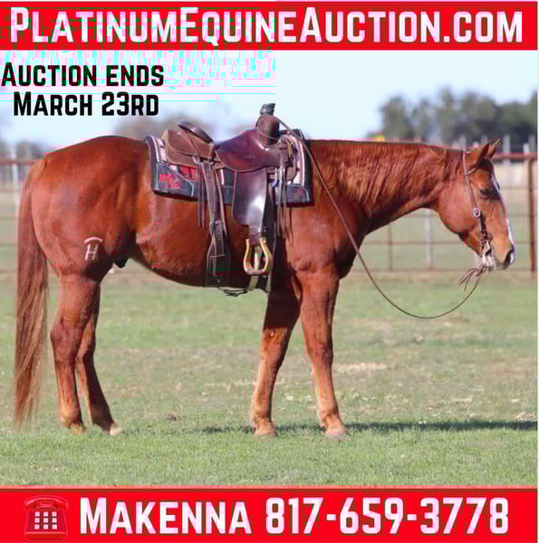 Place your bids at www.PlatinumEquineAuction.com Starting Bid $3500 Auction ends March 23rd, 2025 Need a new saddle? Check out White Rock Saddles on our website or Facebook! Genuine Dry Azure is THE ULTIMATE ALL AROUND HORSE YOU’VE BEEN LOOKING FOR! ?Finished Head Horse ?Established Ranch Horse ?Weekend Warrior Barrel Horse ?Ranch Rodeo Horse ? Fun Trail Horse When someone talks about the word “BombProof”, this is the horse that comes to mind! We guarantee this horse safe for absolutely ANYONE who can hold the reins! Hermie is an 8 year old sorrel AQHA gelding that stands 15.3 hands tall. We’ve used him for just about everything and he never fails to give his all! From ranch rodeos to ropings, he stays level headed, takes as many runs as you ask if him. On the head side Hermie is solid as can be, has plenty of run and gives you the best shot every time, run 10 or 100 and he stays the same every run. Hermie was the main star at the last ranch rodeo, he had every cow roped on him, sorted every calf, and didn’t care about the wildness going on around him. Hermie is patterned on the barrels, just has never been seriously entered, he has the speed and athleticism to really go somewhere if someone seasoned him. Hermie is as broke as they come, he’s handy and will be a great addition to anyone’s string. We are located in Lipan Texas and have hauling available anywhere in the U.S., Hawaii or Canada! Don’t miss out on the gorgeous gelding! Please call or text Makenna Hartzell 817-659-3778 ONLINE AUCTION Place your bids at www.PlatinumEquineAuction.com Starting Bid $3500 Auction ends March 23rd, 2025 Need a new saddle? Check out White Rock Saddles on our website or Facebook!
