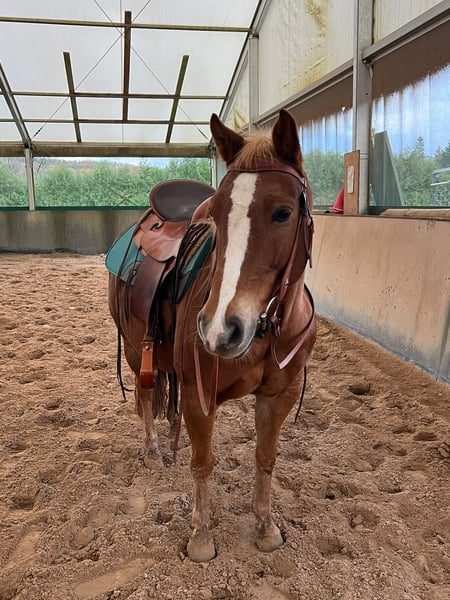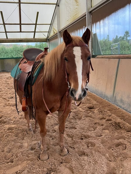 Quarter-Mix-Stute – im Training mit Potenzial Zum Verkauf steht eine Quarter-Mix-Stute (Quarter × Haflinger). Die Stute befindet sich aktuell im Training und zeigt sich dabei arbeitswillig und lernfreudig. Ausbildungsstand: • Läuft im Schritt und Trab zuverlässig und taktsicher • Galopp auf einer Hand bereits sicher, auf der zweiten Hand befindet sich der Galopp aktuell im Korrekturberitt (teilweise Außengalopp) • Kein Anfängerpferd – benötigt einen konsequenten, erfahrenen Reiter, da sie gelegentlich nachfragt Gesundheit / Haltung: Die Stute ist Rehe -anfällig und sollte daher im Frühjahr nicht zu früh auf die Koppel. Mit konsequenter und angepasster Haltung ist eine normale Weidezeit jedoch problemlos möglich. Sonstiges: • Sattel und Zubehör können bei Interesse mit erworben werden • Probereiten ist nach Absprache möglich (Trainer steht begleitend zur Verfügung) • Auf Wunsch kann die Stute auch vorgeführt werden Standort: Preis: Eine interessante, charakterstarke Stute mit Potenzial für erfahrene Reiter, die Freude daran haben, ein Pferd weiter zu fördern und zu begleiten.