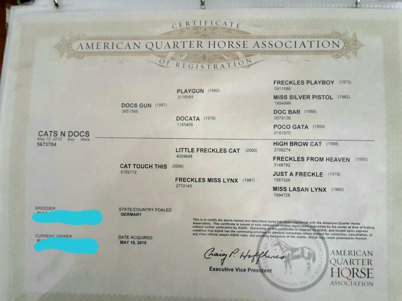 Świetna klacz rasy American Quarter Horse szuka nowych zadań Cats N Docs * 10.05.2015 Ojciec: Docs Gun Matka: Cat Touch This 5 Panel n/n Świetny ruch, atletyczna i pracowita już prezentowana na targach/CHIO i równie chętnie spędza czas w terenie, zarówno samodzielnie, jak i w grupie grzeczna w obcowaniu, zaszczepiona, odrobaczona bez problemu wsiada do przyczepy i zostaje sama z papierami AQHA i ważnym paszportem dla koni Tylko w systemie stajennym na otwartym powietrzu z wystarczającą przestrzenią do ruchu, chętnie w towarzystwie koni kopytuje w stajni, nie jest alergikiem ani nic w tym stylu Zdrowa, bez kulawizn, na boso lub podkuta, w pełni do jeżdżenia Również interesująca jako klacz hodowlana, stare linie krwi Cutting w nieco nowocześniejszym typie Zna maszynę do cuttingu, jeszcze nie ma doświadczenia z bydłem W przypadku zainteresowania proszę o więcej informacji Cena do negocjacji 125🥕🥕 Lokalizacja: Hesja