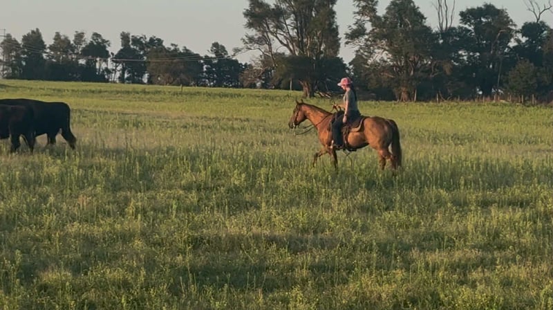 ENCHÈRE EN LIGNE Placez vos enchères sur www.PlatinumEquineAuction.com Offre de départ : 3 500 $ L’enchère se termine le 7 septembre 2025 Vous cherchez une nouvelle selle ? Découvrez White Rock Saddles sur notre site internet ou Facebook. Pixel Gun “Kali” – Jument apHC enregistrée, âgée de 9 ans, mesurant 14,3 mains. Elle est une fille de Chics Loaded Gun, née d’une mère Smart Chicolena. Si vous cherchez votre véritable cheval de cœur, ne cherchez plus — Kali est celle que vous attendiez. C’est une jument fiable en toutes circonstances. Douce, calme, gentille et de confiance, elle a été une enseignante, une partenaire et même la meilleure thérapeute du box. Elle est sûre, expérimentée et prête à réaliser les rêves de quelqu’un. En randonnée, Kali est stable, sûre d’elle, et ne se laisse pas perturber par la faune, la circulation, les chiens ou les surprises. Elle traverse l’eau, franchit les troncs, et aborde chaque aventure avec sérénité. Testée avec des enfants et approuvée par sa propriétaire, c’est une partenaire à qui l’on peut confier tout le monde en toute confiance. En manège, Kali brille par son talent naturel et sa volonté. Elle flotte magnifiquement, s’arrête profondément, tourne, recule, attrape les deux leads, et possède un trot fluide et rêveur. Elle peut faire un side pass pour ouvrir ou fermer les portails et se comporte comme une pro. Elle a été utilisée pour pousser le bétail lors de rodéos, pour faire du tournant dans le pen de découpe, pour mener des poulains, et a été initiée au travail avec du bétail en direct et au drapeau. Kali est douce, sûre et orientée vers les personnes. Facile à attraper, seller, brider et transporter. Elle n’a pas de vices ni de particularités, et ne demande aucun entretien particulier. Facile à entretenir, elle s’intègre bien dans un troupeau mixte, est parfaite pour le maréchal-ferrant, reste calme attachée, et viendra même se placer sur un marchepied pour vous. Que vous cherchiez un partenaire sûr pour la famille, une enseignante pour vous ou vos enfants, un cheval de trail fiable ou un prospect polyvalent pour le ranch, Kali répondra à toutes vos attentes. Les chevaux comme elle sont rares — c’est une véritable perle, prête pour sa prochaine aventure. Située à Elk City, OK. Examen vétérinaire disponible. Contactez Kaitlyn chez Lazy H Equine au 405-510-7442 pour toute question. ENCHÈRE EN LIGNE Placez vos enchères sur www.PlatinumEquineAuction.com Offre de départ : 3 500 $ L’enchère se termine le 7 septembre 2025 Vous cherchez une nouvelle selle ? Découvrez White Rock Saddles sur notre site internet ou Facebook.