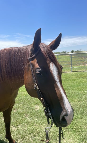 💎 𝐓𝐇𝐄 𝓓𝓲𝓪𝓶𝓸𝓷𝓭 𝐒𝐇𝐎𝐖𝐂𝐀𝐒𝐄 💎 Happening now thru MONDAY | FEBRUARY 23rd - Available EXCLUSIVELY on HorseBid's website! For more details and to register visit: www.Horsebid.com CONSIGNOR CONTACT: Leslie Beuck, Reigning Futures LLC 719-231-3306 LOCATION: Burleson, TX BREED: AQHA REGISTERED: Yes REGISTERED NAME: Be My Lucky Cricket COLOR: Chestnut HEIGHT: 15 AGE: 10 GENDER: Mare A granddaughter of the legendary reining stallion Wimpy’s Little Step, this sweet girl is a great all-around riding partner with a quiet disposition and a versatile foundation. She’s been ridden both Western and English, has experience with small jumps and cross-country, and is a confident trail horse. She’ll walk easily through water and over tarps, and you can stand on her and slide off her butt without phasing her. She has been in training in our reining program the past few months, improving quickly in her general body control and loping frame. However, she is not finished in reining maneuvers. This mare would make a fantastic partner for a confident, older youth or an adult looking for a versatile horse to enjoy. Head to some open shows or play days, enjoy the trails, or just go for a pleasant lope in the arena. The choice is yours with this sweet, quiet mare. At approximately 15 hands and 1200 pounds, Cricket is a nice, comfortable size. Up to date on farrier, deworming, and vaccinations. If you have further questions, please contact Leslie Beuck at (719) 231-3306.