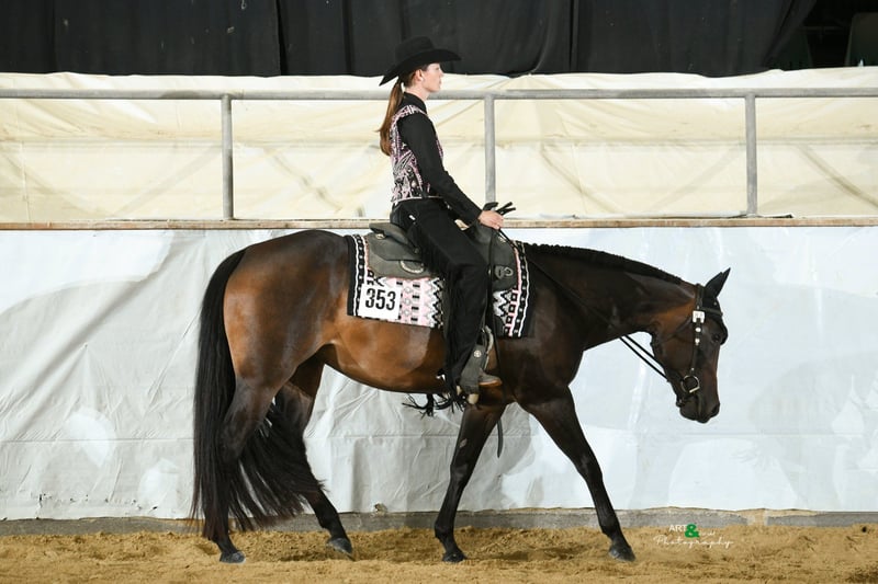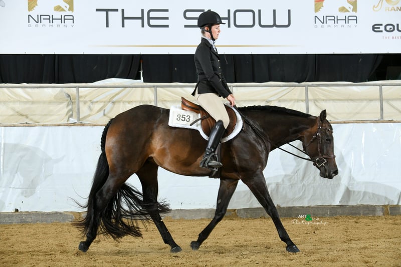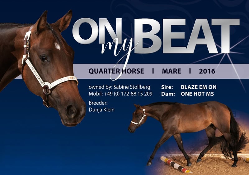 Seltene Gelegenheit für Amateur-, Youth- und Open-Reiter „On MY Beat“ aka Velvet, 03/2016, 154 cm Stockmaß, von BLAZE EM ON aus einer direkten ONE HOT KRYMSUN Tochter wegen Aufgabe des Reitsports zu verkaufen. Velvet ist eine sehr schicke, korrekt gebaute Stute, mit herausragenden Bewegungen und viel Talent für den Western Allround-Reitsport. 2018 von Züchterin Dunja Klein gekauft und seitdem liebevoll und schonend ausgebildet. 2021-2023 Training und Showing bei RB Showhorses (Rikke Benjaminsen). Velvet zeichnet sich durch absolute Zuverlässigkeit und Coolnes aus. Ihre stärkste Disziplin ist der Trail. In der Western Pleassure überzeugt sie durch einen wunderbar gesetzten Lope und Jog. Weitere Disziplinen: Showmanship at Halter, Horsemanship und Hunter under Saddle. Bei entsprechender Förderung sehen wir sie auch in der Westernriding. Neben ihren Showerfahrungen ist Velvet ein Allround-Pferd im besten Sinne. Sie hat einen tollen Charakter und ist eine Top-Partnerin für Familie und Freizeit. Sie steht tagsüber in einer Stuten-Gruppe und ist sehr verträglich mit anderen Pferden. Im Gelände ist sie immer ausgeglichen und freudig in allen Gangarten unterwegs, allein oder in der Gruppe, auch mit Sidepull gezäumt. Velvet kennt es ein Handpferd an ihrer Seite zu haben. Aktuell geht sie mit Hund beifuß. Velvet wird mit komplettem Equipment verkauft: Blue Ribbon Roghout Saddle grau mit Verzierung, passendes Kopfstück von California Ranch, Show-Halter von Kathy’s und vieles mehr. GESUNDHEIT 7-Penal-Test N/N Untersuchungsergebnis Laboklin liegt vor. Insbesondere als Jungpferd regelmäßig chiropraktisch bzw. durch Physio gecheckt. Sie ist regelmäßig entwurmt und geimpft. Letzte Zahnkontrolle war 2024. Aktuell trägt Velvet Eisen. Sie kann aber auch barfuß gehen. Gerne kann eine Ankaufsuntersuchung bei Kostenenübernahme durch den Käufer bei uns im Stall gemacht werden. Röntgenbilder sind noch keine vorhanden. ERFOLGE 2018 DQHA Regionen Futurity Mitte – Res. Futurity Champion Trail in Hand 2 yo 2018 DQHA Regionen Futurity Mitte – 3. Platz Futurity Longe Line 2yo 2018 DQHA Regionen Futurity Mitte – 3. PLatz Futurity Halter 2yo Mares 2018 DQHA Regionen Futurity Mitte – 2. Platz Amateur L1 Halter 2 & Under Mares Show 1 2018 DQHA Regionen Futurity Mitte – 4. Platz Amateur L1 Halter 2 & Under Mares Show 2 - CORONA PAUSE - 2022 EWU Doppelshow Kreuth 2022 – 2. Platz Jungpferde Basis 6jährige Pferde 2022 EWU German Open – 3. Platz Bronce Medaille Jungpferde Trail 6jährige Pferde 2022 EWU German Open – 11. Platz Jungpferde Basis 6jährige Pferde 2022 Bavarian Summer Show – Grand Champion Mares Three and Over Amateur / Show 3 2023 VWB Bavarian Championship – L1 Trail - 8. / 8. / 12. Out of 43 entries ABSTAMMUNG: Sire: BLAZE EM ON (BLAZIN HOT X REGAL ASSET) Dam: ONE HOT MS (ONE HOT KRYMSUN) Züchterin: Dunja Klein, Deutschland. Wir wünschen uns für Velvet ein liebevolles 5☆ Zuhause, in dem sie weiter gefördert wird und der absolute Mittelpunkt sein darf. STANDORT: 76571 Gaggenau (Deutschland) Nähere Informationen und Bilder gerne auf Anfrage. +49 172 8815209 PM oder WhatsApp