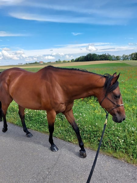 Verkaufe American Quarter Horse Stute Zum Verkauf steht eine elegante American Quarter Horse Stute, geboren im Jahr 2016. Sie besticht durch ihr dunkles braunes Fell und ihr freundliches Wesen. Mit einem Stockmaß von 155 cm ist sie die perfekte Begleiterin für Western Riding und Freizeitaktivitäten. Sie ist gut ausgebildet im Westernstil und zeigt viel Potenzial für ambitionierte Reiterinnen und Reiter. Die Stute ist gesund, zuverlässig und liebt den Umgang mit Menschen. Bei Interesse oder für weitere Informationen stehe ich Ihnen gerne zur Verfügung.