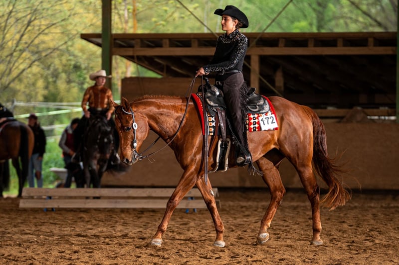 Due to a reduction in herd size, we are looking for a loving new home for this 5-star rated horse. Shez Hung in the Moon, 2015, AQHA mare. Nicknamed "Ginger" Presidental Order x Dress Western mare A beautiful, expressive 10-year-old Quarter Horse mare standing 16.3 hh, available for sale. "Ginger" is a talented all-round pleasure mare. She competes in Pleasure, Horsemanship, Trail, Ranch Riding, and Western Riding. She loves trail rides and free lunge work. Whether as a leisure horse or for competition, she leaves nothing to be desired. This year, she was regularly ridden by an eleven-year-old girl, and "Ginger" performed exceptionally well. She is very well-behaved and completely reliable in handling. A wonderful, patient teacher. She has been introduced to competition for the first time this year, and "Ginger" clearly enjoyed it, always placing highly. She is shod in front, lives in an active stable, and is also familiar with paddock box turnout. We are hoping to find her an ideal, top placement.
