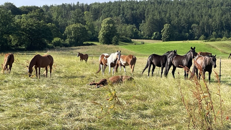 TFR A Blaze of Glory. Rufname Eve. Chestnut. Geboren 27.01.2016. Vater: Blaze Em On Mutter: Browny Deluxe Fohlen: Keine. Eve habe ich 3 jährig, zusammen mit meinem Trainer, angeritten und bis jetzt weiter ausgebildet. Wir haben zusammen viele Kurse besucht, und regelmäßig Unterricht genommen. Aktuell sind wir im Turniersport auf LK 2 niveau. Geshowd habe ich sie in den Klassen: Ranch Riding, Ranch Rail, Trail, Pleasure und Horsemanship. Vor allem im Trail und in der Pleasure liegen ihre Stärken. An den fliegenden Wechseln arbeiten wir noch, sodass wir auch eine Western Riding starten könnten. Hänger fahren ist kein Problem. Auch einen großen Anhänger für 6 Pferde ist sie gewöhnt und kein Problem. Eve steht Vollpension. Im Winter über Tag in einer kleinen Gruppe auf einem Paddock. In den Sommermonaten 24 Stunden in einer Herde auf der Weide. Eve ist in der Rangordnung ziemlich weit oben. Wir gehen regelmäßig, vor allem alleine ins Gelände. Hier konnte ich mich immer auf sie verlassen. Fremde Tiere zum Beispiel, zeigt sie mir an, noch bevor ich sie wahrgenommen habe, hat aber keine Angst. Eve ist sehr „fein eingestellt“, und ein hat ein weiches Gangwerk. Unter Anfänger ist sie super lieb und brav und verzeiht viele Fehler. Bei der AKU 2020, wurde hinten Spat diagnostiziert. Bisher hatte sie damit noch nie Probleme. Aktuell hat sie vorne eine Spezialbeschlag und hinten barhuf. Bei ihr wurde im November 2025 auf beiden Vorderbeinen Hufrolle festgestellt. Sie bekam daraufhin einen Stammzellentherapie. Diese hat sehr gut angeschlagen. Eve ist lahmfrei, sodass ich jetzt wieder angefangen habe sie anzutrainieren. Tierarzt , Hufschmied und Trainer sagen, sie sei zu 100% belastbar. Sie ist entwurmt und Geimpft. u.a. Influenza, Westnil, Herpes. Vollständige Papiere, AKU und diverse Röntgenbilder auch vom 2025 können eingesehen werden. Gerne können wir einen Vor Ort Termin abstimmen zum probereiten. Standort 37…