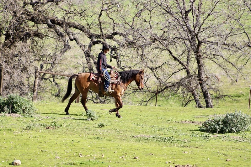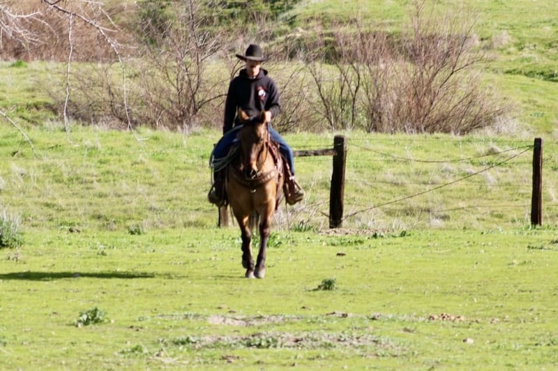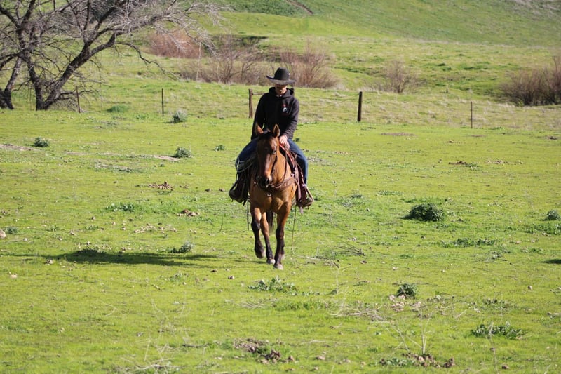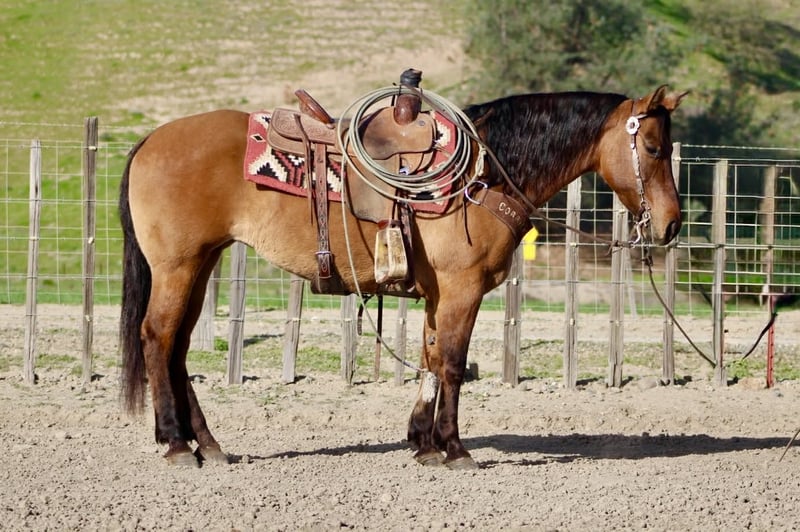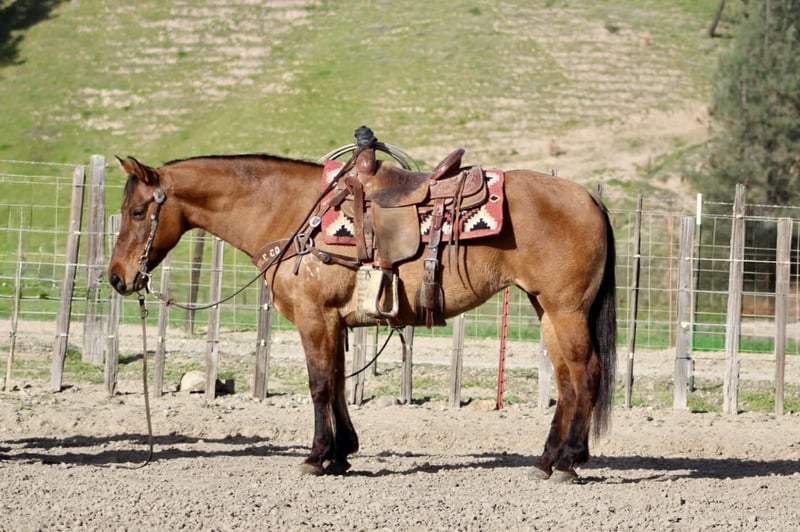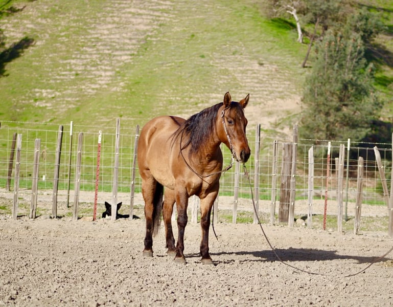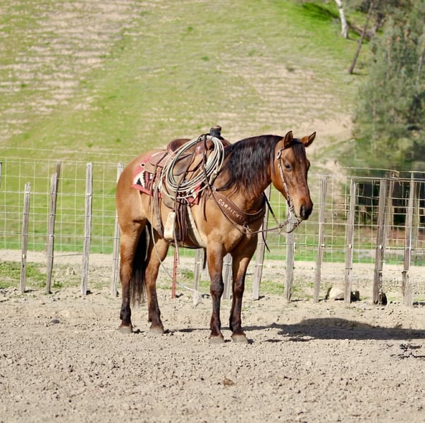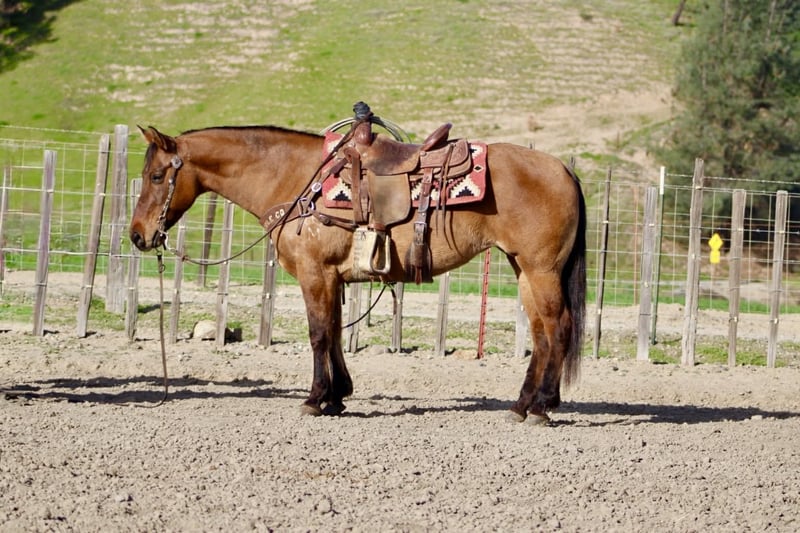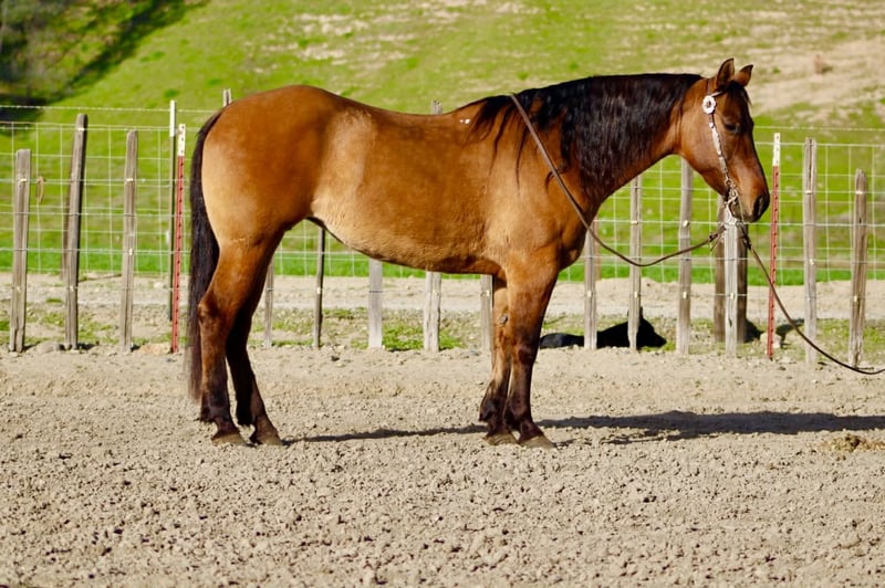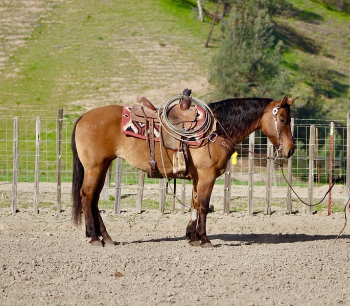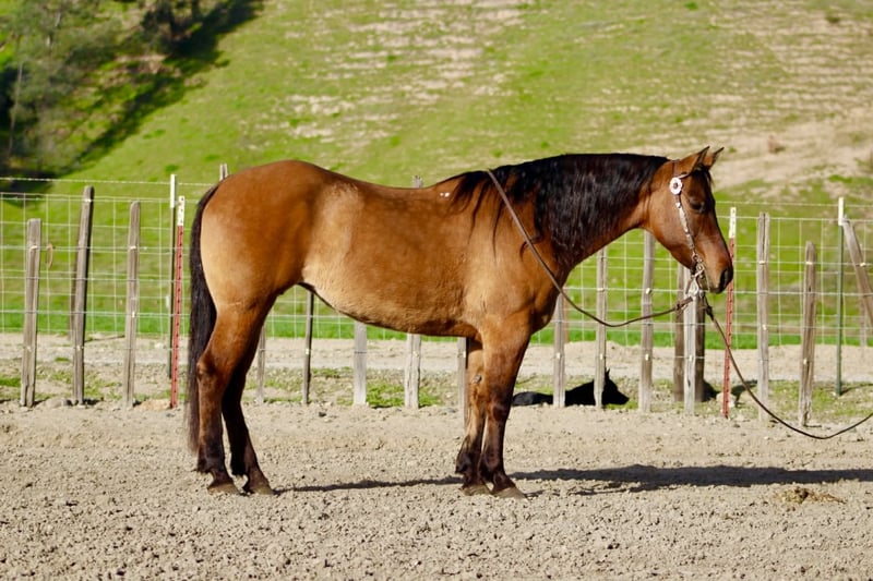 "AVAILABLE ON ONLINE HORSE AUCTION AT www DOT PlatinumEquineAuction DOT com BIDDING OPEN NOW thru SUNDAY | FEBRUARY 15TH! *Final price will be determined on auction site* CONSIGNOR CONTACT INFO: Longhorn Ranch LOCATION: Paicines, CA SAFE • SEASONED • ALL-AROUND 10 Years Old • 14.3 Hands • Dunskin Mare Addie is a solid, conformationally correct dunskin mare and the kind of all-around horse that defines what an exceptional partner really is. From the moment you swing a leg over Addie, you can feel how honest and steady-minded she is. Addie is a solid ranch horse, has been started in the roping pen, and is one of the safest, most steady-minded trail horses you will ever own. Addie offers a level of seasoning and all-around ability that you simply don’t run across every day. Addie is steady, uncomplicated, and easy to depend on. Whether ridden every day or left off for a period of time, Addie comes out exactly the same—quiet, willing, and ready to go to work. Addie has no buck, no spook, and no silliness. Her kind, cooperative, level-headed demeanor makes Addie suitable for riders of many ages and experience levels. She has been ridden by kids of all ages, and first-time riders can enjoy Addie just as much as seasoned riders. She is truly the definition of a horse you can count on. On the trail, Addie is as solid as they come. Addie is sure-footed and confident in all types of terrain, willingly crossing water, brush, logs, and rocky or uneven ground without hesitation. Wildlife, traffic, and new environments do not bother Addie. She is the kind of trail horse you can relax on and enjoy, knowing Addie will take care of you every step of the way. Addie has been exposed to a variety of obstacles and handles them with ease, including flags, tarps, bridges, pool noodles, balls, and dragging objects. She is comfortable around dogs, ranch equipment, and general ranch commotion. Addie is easy to handle on the ground. She hauls quietly, ties, clips, bathes, saddles and bridles easily, and stands great for the farrier. She is respectful, mannerly, and a pleasure to be around. In the arena, Addie is broke, soft, and correct. Addie carries a low head, stays collected, and lopes smooth, beautiful circles. She has a big, honest stop, turns smoothly, and is light in the bridle. Addie guides easily on a loose rein and neck reins nicely. In the roping pen, Addie has been started and is coming along nicely. Addie stands quiet in the box, leaves clean, and rates cattle. She stops hard and is shaping up to be a nice heel horse or breakaway prospect. Addie is gentle and forgiving, making her a great candidate for someone wanting a safe rope horse to continue seasoning. Addie is the kind that becomes a barn favorite quickly and one that is hard to replace. Addie’s combination of safety, usability, and kind disposition does not come around often. Do-it-all mare. Trail, ranch, obstacles, roping — Addie does it. Come meet Addie and see for yourself why she is so special. Dina Cabral – Longhorn Ranch 831-537-1915 Paicines CA