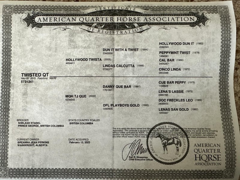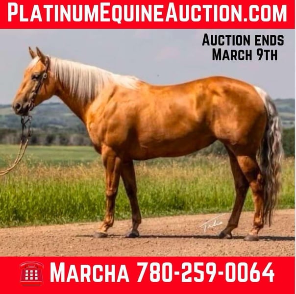 ONLINE AUCTION Place your bids at www.PlatinumEquineAuction.com Starting Bid $3500 Auction ends March 9th, 2025 Need a new saddle? Check out White Rock Saddles on our website or Facebook! They do not get any prettier than this! We can’t say enough good things about this awesome mare. She was started in a reining program and has the foundation of all her maneuvers. Since then, she has been shown in the cowhorse and used as a family horse. She is gentle and sensible with the ability to tolerate the most insane situations. She has spent countless days navigating the Rocky Mountains and logged her hours in the 4-H pen, as well. She excels at gymkhana, obstacle days and ranch on the rail. We have had her in professional training for the last 3 months, where they have been breakaway roping and using her to start colts. QT is the kind you can grab for any job. My daughter uses her as a practice trick-riding horse and we has ridden her in town and in parades. Take a look at her video! She is sure to make you an awesome horse! We are excited to be offering her. Selling because we have young horses coming in and are not using her to her fullest potential. We love QT and know you will too! Located in Scottsdale, AZ. Contact Palo Verde Performace Horses Marcha 780-259-0064 with any questions. ONLINE AUCTION Place your bids at www.PlatinumEquineAuction.com Starting Bid $3500 Auction ends March 9th, 2025 Need a new saddle? Check out White Rock Saddles on our website or Facebook!