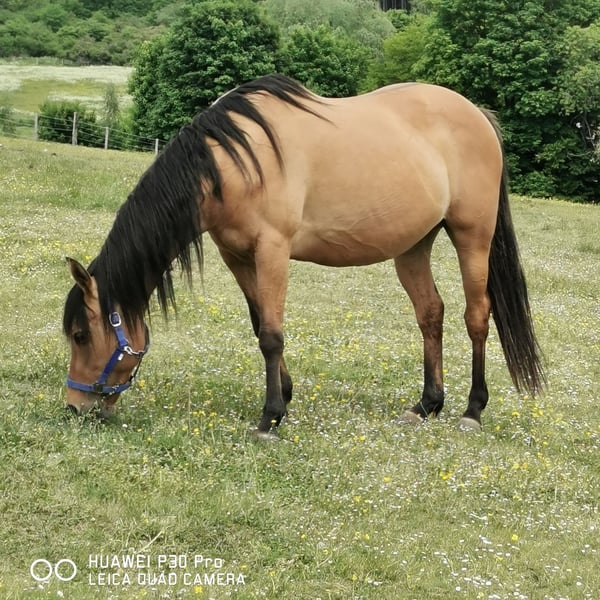 HALLO, Ich Beende meine Zucht !!! Das ist eine super liebe und tolle Zuchtstute ,,,,sie hat mir immer hübsche und gute Fohlen gebracht !!! Sie ist nicht geritten daher verkaufe ich sie nur als Zuchtstute,,, wenn sie das erste Fohlen Verkaufen, haben sie den Preis der Stute schon raus,, Hallo,,,,,,aber ich werde sie nochm,al zu einem anderen QURTER HORSE HENGST BRINGEN , und verkaufe sie auch gern tragen d !!!!!! 2 Bilder sind auch vom Hengst dabei ,Papiere gehen nur über watts ap, leider hat sie kein Papier ist aber eine Quarter Stute, für alle weiteren Fragen gern anrufen 0160 8038660+