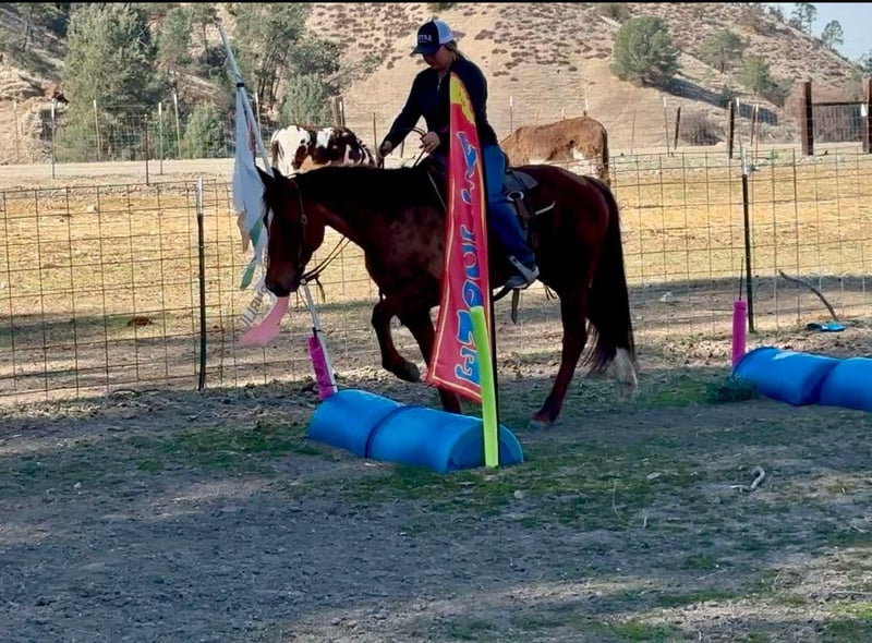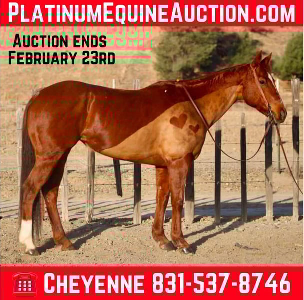 ONLINE AUCTION Place your bids at www.PlatinumEquineAuction.com Starting Bid $3500 Auction ends February 23rd, 2025 Need a new saddle? Check out White Rock Saddles on our website or Facebook! A mare with many talents that gentle for the entire family is hard to come by, but not impossible. Buttercup is here to prove that! This doll is 10 years old and stands a perfect 14.3HH. Buttercup is a been there, done that type of mare. She has many hours of experience as a trail horse, ranch horse, lesson horse, and English low level jumper. Buttercup was raised and started western. She has been roped off of outside, used to do daily tasks around the ranch and is honest and dependable at all times to get a job done. She is an exceptional trail horse and has been rode all over steep, tricky mountain trails, bustling roads, and never misses a beat. She has no spook and is willing to go anywhere you point her. Recently, for the last year, she has been being used at an English barn teaching kids of all levels how to ride, jump, and just simple be around horses. Buttercup is safe for the beginners and can be trusted to take care of them. This mare stays solid and doesn’t get fresh, or act silly with time off. She has done low level poles, and jumping. She has a really good handle on her and is very manageable for anyone to ride. She neck reins, responds to leg pressure, collects at the poll, and knows her leads, with a super nice, collected stop and reverse. Buttercup is just simply easy! This is a mare of many talents, who can do anything asked of her. This makes her fitting for any home! She is laid back enough for the relaxed trail riders, but also fancy enough to go into multiple competitions. She is currently up to date on vaccines, and deworming. She is located in Bitterwater, CA and we would love for you to come see how great she is for yourself! Please contact Cheyenne Rey 831-537-8746 for any more info or make arrangements to come visit her! ONLINE AUCTION Place your bids at www.PlatinumEquineAuction.com Starting Bid $3500 Auction ends February 23rd, 2025 Need a new saddle? Check out White Rock Saddles on our website or Facebook!