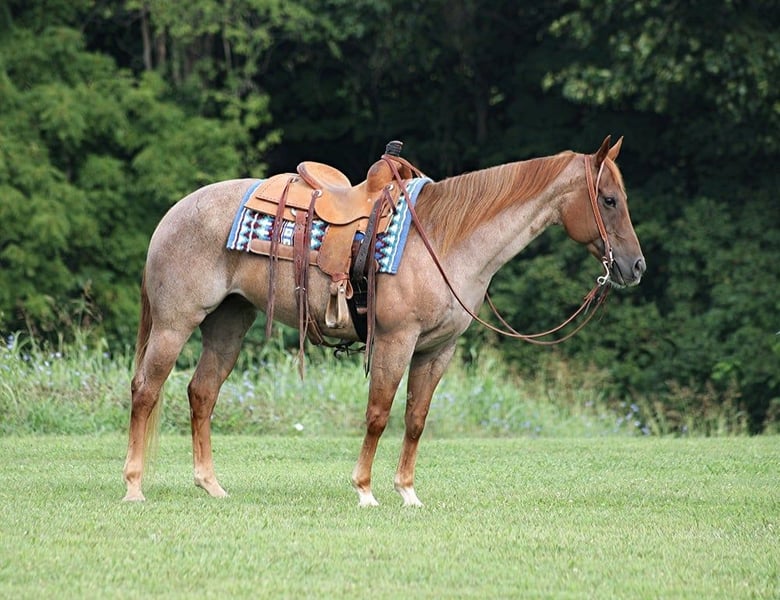 ONLINE AUCTION Place your bids at www.PlatinumEquineAuction.com Starting Bid $3500 Auction ends August 11th, 2024 Need a new saddle? Check out White Rock Saddles on our website or Facebook! If you are looking to add some flash to your farm, something pretty to your plantation or something beautiful to your breeding program take a look at Dun It Down In Dixie! Dixie is a super stout built true red roan 2015 model Registered AQHA mare standing around 15.1hh. She has an outstadning pedigree that on the top side goes back to Hollywood Dun It and Nu Chex To Cash with the bottom side going back to Peptoboonsmal. Dixie is bred to do anything that involves a cow or involves reining and she is a do it all type of horse. She has been ridden down the highways and out on trails where she will cross creeks, ditches, logs and navigate rough rocky areas. She has a smooth jog and rides low headed. She lopes around as well. She has been exposed to all kinds of wildlife and will go anywhere that she is asked too. She will go up or down even the steepest slopes, across deep creeks, over downed trees, and over all types of rough terrain while still being sure footed. Located in Level Green, KY. Feel free to call Moore Trained Horses Logan 765-265-0033 with any questions. ONLINE AUCTION Place your bids at www.PlatinumEquineAuction.com Starting Bid $3500 Auction ends August 11th, 2024 Need a new saddle? Check out White Rock Saddles on our website or Facebook!