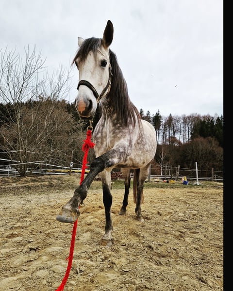 🐎 Ein Pferd fürs Herz – zuverlässig, ehrlich & gelassen 🐎 Manche Pferde geben einem vom ersten Moment an das Gefühl von Sicherheit und Vertrauen – genau so eine ist diese 11-jährige Quarterhorse x Tersker Stute (ca. 1,58 m, Schimmel). Sie ist ein wahres Goldstück im Gelände: ruhig, nervenstark und absolut zuverlässig. Ob in der Gruppe oder alleine unterwegs – sie bleibt gelassen und gibt ihrem Reiter jederzeit ein gutes Gefühl. Deshalb ist sie auch ideal als Freizeit- oder Wanderreitpferd, mit dem man einfach losreiten und den Kopf frei bekommen kann. Am Boden zeigt sie sich aufmerksam, fein und motiviert. Die Bodenarbeit macht ihr sichtbar Freude, und auch erste Einblicke in die Zirzensik hat sie mit Neugier und Spaß angenommen. Sie arbeitet gerne mit dem Menschen zusammen und ist dabei stets freundlich und kooperativ. Im täglichen Umgang ist sie brav, unkompliziert und verlässlich, außerdem verladefromm. Sie hatte bereits zwei Fohlen und ist gechippt, geimpft sowie regelmäßig entwurmt. 5 Panel Test N/N Diese Stute sucht keinen Job, sondern einen Menschen, der ihr Vertrauen schätzt und mit ihr viele entspannte Stunden verbringen möchte. 📍 Standort: 87767 Niederrieden 💰 Preis: 8.500 € ohne Equipment 10.000 Euro mit Equipment (Sattel Triple w platinum)