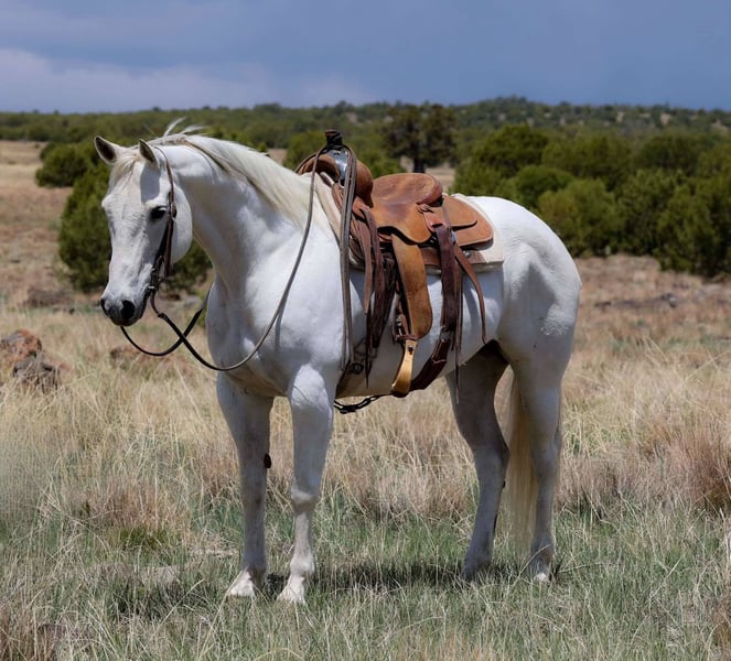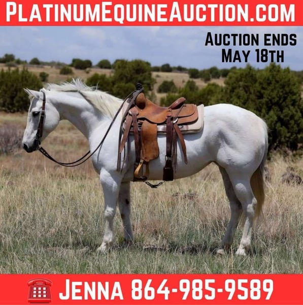 ONLINE AUCTION Place your bids at www.PlatinumEquineAuction.com Starting Bid $3500 Auction ends May 18th, 2025 Need a new saddle? Check out White Rock Saddles on our website or Facebook! Lena is an 11 year old grade grey mare standing 14.3hh & is just as talented as she is beautiful! This sweet lady has been used all over! She is outstanding in the arena; neck reins like a champ, walk, trots, & lopes both ways and is truly just a gentle hearted mare. She has also been used as a kids lesson horse, she’s been rode in town several times, and in lots of gymkhanas and rodeos! She has also been used extensively to help doctor, and do every day ranch chores. She is very user friendly. Lena and I have spent countless hours in the mountains as well, going through all kinds of terrain. We’ve rock pounded for miles, crossed several rushing streams, fallen logs, broken fences, and steep hills time & time again & she is consistent every time. Whatever I could imagine, she’s taken me there safely! She stands wonderfully for baths, shoeing, tacking, grooming & even loads without hesitation. Absolutely no buck, bite, rear or bolt. She is also a dream for the farrier. She comes with a clean health certificate and coggins! I can help assist arranging transport to anywhere is the US! Don’t hesitate to call or text with any questions Jenna Edwards 864-985-9589 Located in Cottonwood, AZ. ONLINE AUCTION Place your bids at www.PlatinumEquineAuction.com Starting Bid $3500 Auction ends May 18th, 2025 Need a new saddle? Check out White Rock Saddles on our website or Facebook!