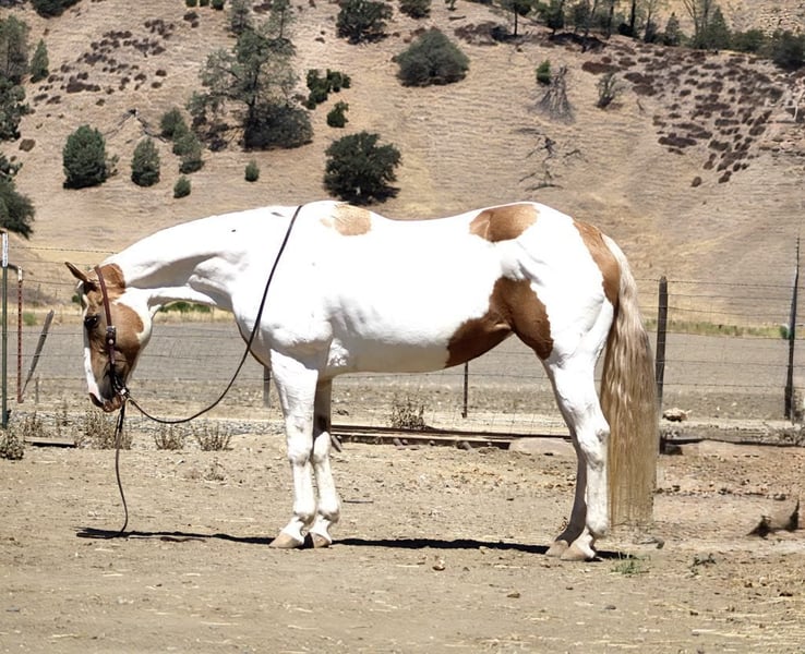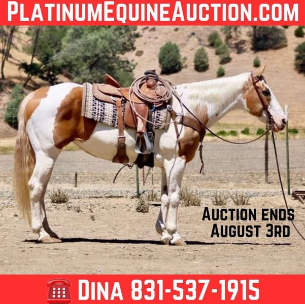 ONLINE AUCTION Place your bids at www.PlatinumEquineAuction.com Starting Bid $3500 Auction ends August 3rd, 2025 Need a new saddle? Check out White Rock Saddles on our website or Facebook Meet Bunny… If you’ve been searching for that rock-solid, “take-care-of-you” kind of horse… meet Bunny. She’s an 11-year-old palomino and white paint mare who stands 15 hands, but her heart and patience are ten feet tall. Bunny has safely carried everyone from nervous first-timers to adults who haven’t ridden since dial-up internet was a thing. She’s taught countless riders the ropes with confidence and zero drama. This is the kind of mare who makes you feel like you know what you’re doing—even if you don’t. In the arena, Bunny is soft and correct. She lopes smooth circles, stops and backs with ease, and has just enough turn-around to remind you she’s broke, not boring. She’s as dependable as the sunrise, with no buttons to accidentally push and no funny business to worry about. On the trail, she’s a machine. Bunny navigates rocky climbs, creek crossings, logs, brush, and steep hills like she’s part mountain goat. She’s seen it all—flags, traffic, tarps, sirens, pool noodles—and never bats an eye. Bunny will conquer any obstacle you throw her way. She’s also been used on the ranch and knows her way around cattle and branding. We trust her with our greenest riders because she’s basically a babysitter in a bridle—steady, kind, and always thinking ahead. And her ground manners? Impeccable. She leads, ties, bathes, hauls, stands for the vet and farrier, and settles into new places like she’s been there forever. She’s polite, friendly, not marish in the slightest, and frankly acts better than most geldings—and a good number of humans. If you’re looking for a safe, kind, all-around wonderful mare to be your trail buddy, confidence builder, family horse, or ranch partner, Bunny is ready to help take care of you. Located in Paicines, CA. Call Dina at Longhorn Ranch: 831-537-1915 Delivery available, but only if you promise to treat her like royalty. ONLINE AUCTION Place your bids at www.PlatinumEquineAuction.com Starting Bid $3500 Auction ends August 3rd, 2025 Need a new saddle? Check out White Rock Saddles on our website or Facebook