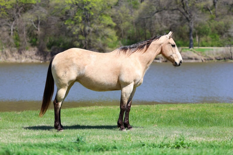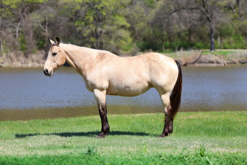 ▪️▫️◾️𝐭𝐡𝐞 𝑴𝒂𝒚 𝐒𝐞𝐥𝐞𝐜𝐭◾️▫️▪️ Happening now thru MONDAY | MAY 4th - Available EXCLUSIVELY on HorseBid's website! For more details and to register visit: www.Horsebid.com CONSIGNOR CONTACT: Triple M Ranch 469-318-1902 LOCATION: Talty, TX BREED: Quarter Horse REGISTERED: No REGISTERED NAME: Cookie Dough COLOR: Buckskin HEIGHT: 14.3 AGE: 12 GENDER: Mare 🍪Meet Cookie Dough!! A beautiful buckskin mare. 12 years old and 14.3 hands tall. She is a sweet glamorous mare that is unbelievably broke!! This mare has all the fancy bells and whistles in her training. Plus Cookie Dough is the true definition of gentle, safe, well-mannered type. Whether you’re looking for a horse for the whole family to hit the trails on, a solid broke mount to go do a days work on, or a smooth ride to play around in the arena Cookie Dough is your girl!!! She has been used around ranches her whole life, making her very experienced and versatile! She’s great if rode once a week, once a month or even once every 6 months! She doesn’t get fresh. No tune up required. She’s the kind you can just jump on and go! Cookie Dough will go absolutely anywhere you point her, through rough rocky country, steep slippery slopes, thick brush, flowing waters, busy streets of town, you name it and she will go on through it without batting an eye and she is as surefooted as can be! Cruise on down the trail with ease on her. She is not only great to ride outside, she’s an absolute blast in the arena as well! She will walk, trot, and lope both ways with ease. Smoothly picks up both her leads, neck reins perfectly, and has a good stop! Cookie Dough has been used to gather and sort cattle, and used for roping. She would excel in team penning or team shorting events. No matter what you do with her you as sure to enjoy her. 🍪Cookie Dough is a super easy keeper. Requires no maintenance of any kind. No special feed or supplements. She can go bare foot or put shoes on her. She has excellent hooves. Good with her feet/farrier. She gets along great with other horses. She is not mean to other horses or marish. You can stall her or turn her out. Doesn’t matter to her. She sells 100% sounds with no issues. She did have a pre vet evaluation done included in the pictures. If you have anymore questions about her feel free to call. We would love to visit with you about her. We can help you arrange shipping anywhere. She is up to date on all vaccinations, worming, had her teeth checked, feet. She is ready to go to her new home to be loved and enjoyed.