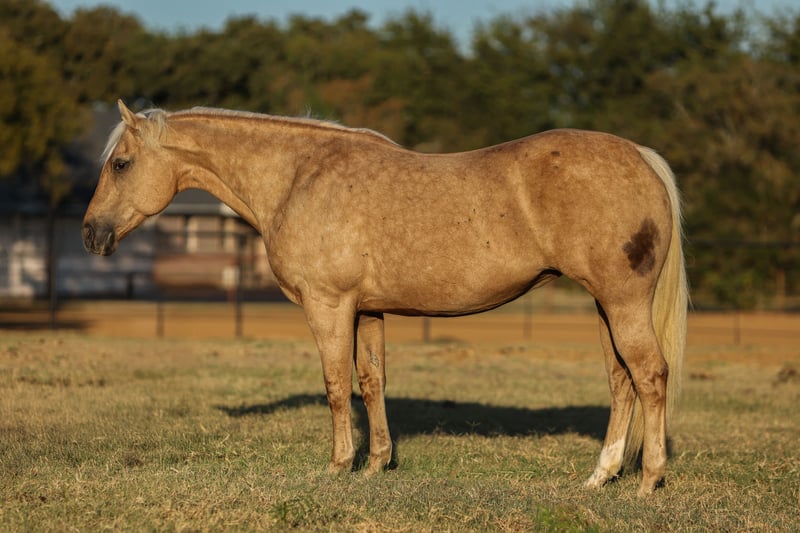 ⚜️𝐓𝐇𝐄 𝐅𝐀𝐋𝐋 𝐇𝐄𝐑𝐈𝐓𝐀𝐆𝐄 𝐂𝐋𝐀𝐒𝐒𝐈𝐂⚜️ Happening now thru MONDAY | NOVEMBER 3rd - Available EXCLUSIVELY on HorseBid's website! For more details and to register visit: www.Horsebid.com CONSIGNOR CONTACT: Combs Quarter Horses 727-741-0559 LOCATION: Cleburne, TX BREED: Quarter Horse REGISTERED: No REGISTERED NAME: Goldie COLOR: Palomino HEIGHT: 15 AGE: 12 GENDER: Mare If you’ve come to find the prettiest family trail horse.. Goldie is the one for you! 12yr old mare standing a stocky 15h tall. Goldie is the prettiest dark golden palomino mare you can find with the absolute best in your pocket disposition. This is a super comfortable mare to ride with the easiest go with the flow type of personality. Goldie has been used in an English lesson barn teaching the “up down” lessons, she’s packed the kiddos around the smaller jumps, she’s been shown successfully in the lower hunters and jumpers, and shes the best trail horse you could ask for! Nothing bothers her! She doesn’t mind the wildlife, dogs or water. She goes up and down the big hills with ease, she’s careful on the rocks and she’s a blast to gallop along the open areas! She will ride out alone or anywhere in the group. She will also let you pony off of her without trouble. Goldie doesn’t get hot or excited. She will go just the speed you ask of her with a great one hand neck rein, an easy stop and a nice low headset. This girl is an easy keeper that can sit for long periods between rides without issues. From the kiddos to the seniors.. you’re sure to love riding and loving this super sweet mare!! Goldie is sound with no maintenance. Super easy keeper. She is currently eating free choice alfalfa and 1/2 scoop of a basic pellets once a day. Goldie is easy to catch and quiet in a mixed herd setting. Not a bossy mare by any means. Super easy to load and haul. Stands tied to the trailer like a lady. Exceptional ground manners. Even the little ones can lead her around. No bad habits, no vices, no buck, rear bite or bolt. Goldie will ride any anything from a halter to a French link snaffle. She’s not picky or fussy.