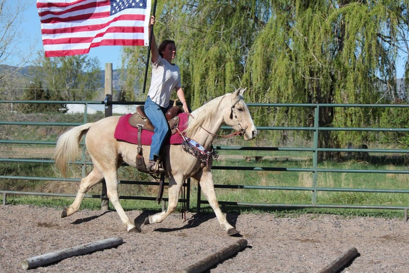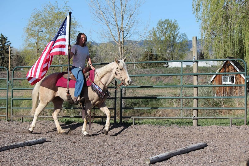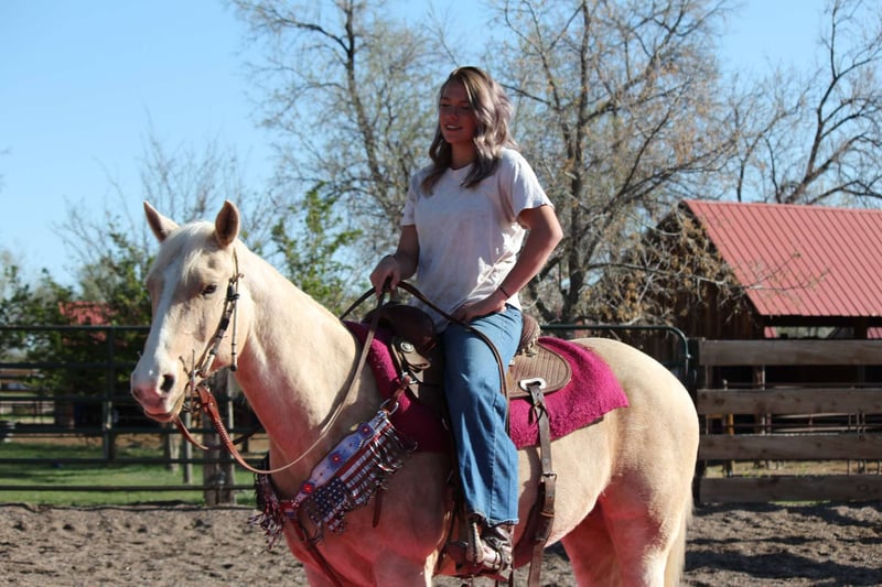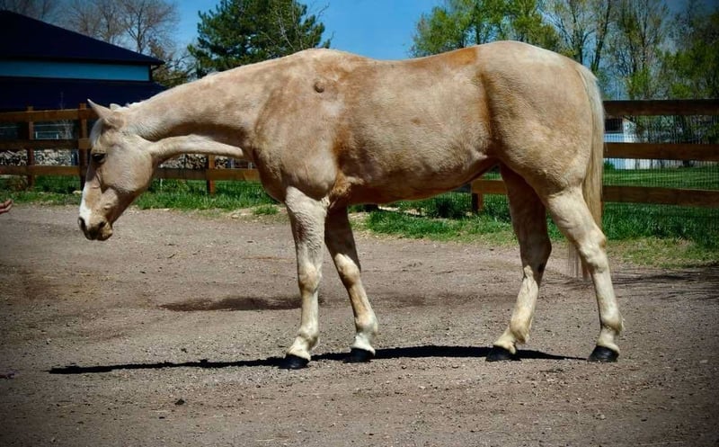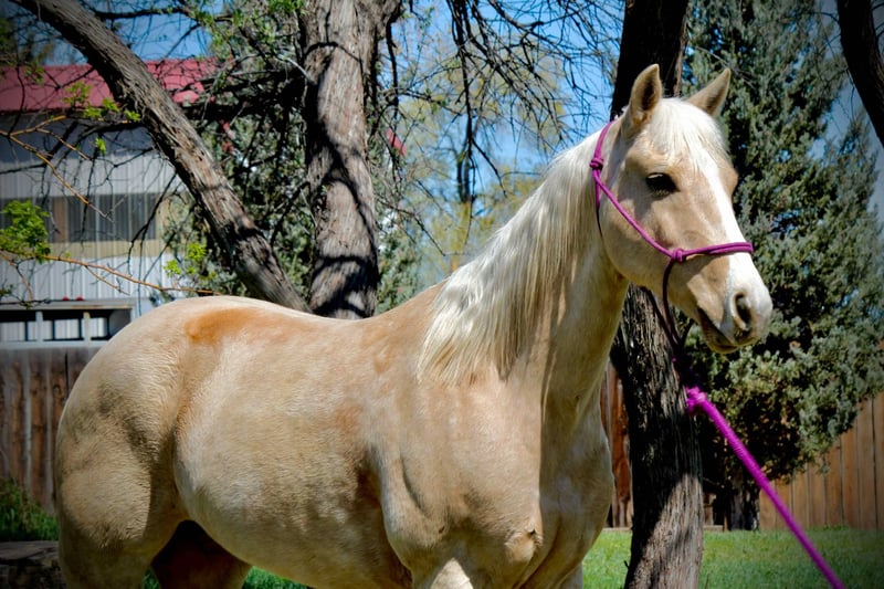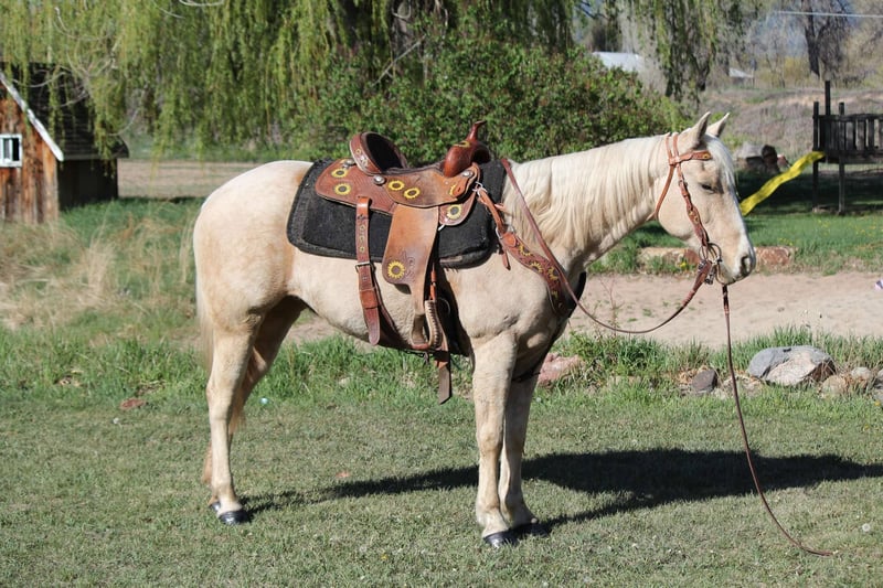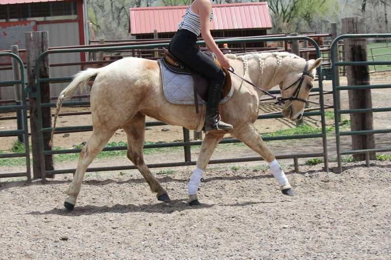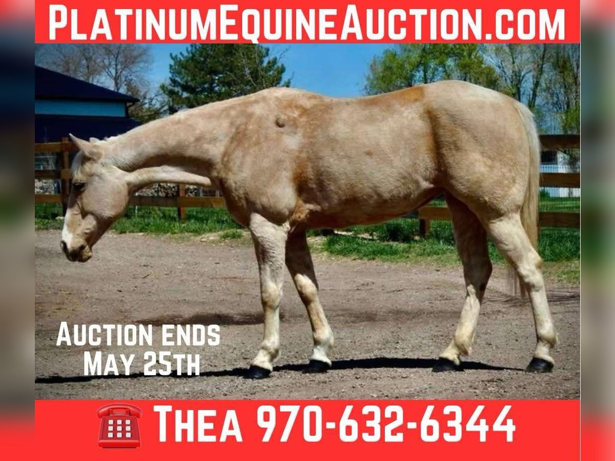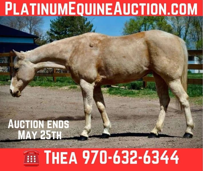 ONLINE AUCTION Place your bids at www.PlatinumEquineAuction.com Starting Bid $3500 Auction ends May 25th, 2025 Need a new saddle? Check out White Rock Saddles on our website or Facebook! Honest and reliable are the first words that come to mind when describing Cake Pop! This gorgeous palomino mare is 12 years old, stands 15 hands tall, and has a beautiful mane and tail with lots of chrome markings. Cake Pop is easy to catch, has great ground manners, and will follow you around like a puppy. My one-year-old can lead her around and love on her. She loads and hauls well, is good around other horses and ponies, and has even been around cows and sheep! Cake Pop has a sweet personality, a kind eye, and is always gentle. Not only is Cake Pop gorgeous, but she is also well-trained! She has an honest one-handed neck rein, stays behind the bridle, and responds to seat and leg cues. She walks, trots, and lopes nice circles, picks up both leads with smooth departures, side passes, and has a great stop. Cake Pop is a seasoned all-around horse with thousands of miles ridden in pastures, open country, and on trails. She has done ranch chores and had cattle roped off her. She is calm in busy towns with traffic and handles rough trails with ease, is sure-footed on rocky terrain, and will cross any obstacle. She is quiet and safe in any environment! If you’re looking for a horse you can ride weekly or monthly, Cake Pop is perfect! She is trustworthy and safe for any age or experience level. Cake Pop has also excelled in hunter jumper and cross country, with a big stride, flowy movement, and nice collection. She has done lots of cavaletti and footwork and knows how to use her body. This versatile horse is suitable for everyone, from my one-year-old packing around on her, to my lesson kids learning how to ride to advanced riders needing a pick up horse or something quick and athletic this mare is here for the job. Come meet Cake pop! ; she’s what dreams are made of! For more info contact Dynamite Horses Thea 970-632-6344 Located in Fort Collins, CO. ONLINE AUCTION Place your bids at www.PlatinumEquineAuction.com Starting Bid $3500 Auction ends May 25th, 2025 Need a new saddle? Check out White Rock Saddles on our website or Facebook!