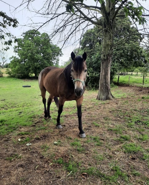 American Quarter Horse Mix Stute – Buckskin, Geburtsjahr 2012 Zum Verkauf steht unsere wunderschöne American Quarter Horse Mix Stute Camilla Ginger in der begehrten Farbe Buckskin. Sie wurde am 07.06.2012 geboren und überzeugt durch ihre kräftige Statur und ihr freundliches Wesen. Sie hat ein ungefähres Stockmaß von 1,50m. Die Stute war bei uns immer gesund, wurde regelmäßig Entwurmt und dem Schmied vorgestellt. Beim Verladen sowie Anhängerfahren und Terminen beim Hufschmied ist Sie immer lieb. Bodenarbeit, Kuscheleinheiten und ausgiebige Spaziergänge sind genau Ihr Ding. Kinder findet Sie super und auch Traktoren, Kleintiere und sonstige Geräusche sind kein Problem für Camilla. Sie wurde bei uns aufgrund von Zeitmangel nicht geritten, weshalb wir Sie als ungeritten und Beisteller verkaufen. Da Camilla schonmal ein Fohlen hatte, können wir uns Sie auch gut als Zuchtstute vorstellen. Bei Interesse oder weiteren Fragen stehe ich gerne zur Verfügung. Eine Besichtigung ist nach Absprache möglich.
