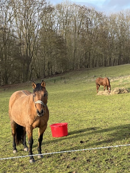 Beautiful mare seeking a new home. She had a few foals before my time and was originally kept at Merzig Hofgut Berg for many years. With us, she has been used for relaxed trail rides, which she handles very well. Year of birth: 2010 Sire: Hollywood Dun It Laboklin tested and clear Height: approximately 154 cm Color: Buckskin (Dun) Good qualities: no biting, no kicking, easy to handle for the farrier, very calm, never spooks at people, never pushes. Thick mane and tail. Suitable for guided walks with small children. Less good qualities: dust allergy, deworming only with a special method, sometimes needs a gentle reminder when gathering her in the evening. In the stable, she needs moist or steamed hay, otherwise she coughs. No problem with round bales in the paddock. Last year, she was at Lutz Lekebusch for a 4-week refresher. I can easily imagine her as a mother/daughter team or for older riders for leisurely rides, or as a broodmare. There are two geldings that look like her. Interested parties are welcome to arrange a pre-purchase examination (AKU). A co-ownership or breeding agreement will be included in the contract. Please read carefully and provide your name and phone number when inquiring. Priority goes to the best offer.