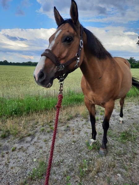 Willows Blue Cheyenne aka Chachi sucht ein neues 5* Zuhause. Chachi ist ein absoluter Eyecatcher mit dem gewissen etwas. Nun sucht Chachi einen neuen Wirkungskreis auf Lebenszeit, da Ich Ihr zeitlich leider nicht mehr gerecht werden kann. Chachi ist eine selbstbewusste Stute mit z.T eigenem Kopf daher nicht für Reitanfänger und Reitbetriebe geeignet aber sicher in allen 3 Grundgangarten und definitiv ein Pferd mit einer guten Ausbildung. Chachi ist Schmiede und Verladefromm und steht momentan im Offenstall, kennt aber auch Boxenhaltung. Sie ist bei mir immer Barhuf gelaufen. Chachis Turnierkarriere führte sie bis in die LK1 der EWU mit diversen Platzierungen und Erfolgen und auch einem Landesmeistertitel mit mir selber. Auch Jugendliche trug Chachi artig durch Ihre ersten Prüfungen. Die letzten Jahre verbrachte Chachi hauptsächlich damit ins Gelände zu gehen und vielleicht auch mal dem ein oder anderen das reiten beizubringen. Chachi hat keine bekannten vorhandenen Grunderkrankungen. Sie ist absolut kein Notverkauf aber definitiv Platz vor Preis. Die Dame sucht einen Platz auf Lebenszeit wo es einfach passt. Weitere Bilder Videos etc gerne auf Anfrage