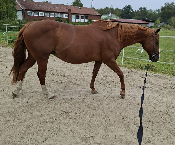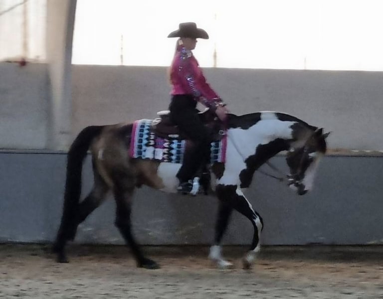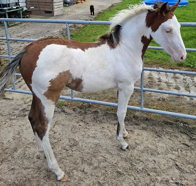 Ouarter Horse/ Paint Stute - für den Freizeitbereich oder Turniersport Zum Verkauf steht eine gesunde, aufgeweckte Scheckstute, geboren 04/25 Die Stute besticht durch ihren kompakten. korrekten Körperbau und viel "Lady Charme" Sie wird im Offenstall gehalten, kennt jedoch auch Boxenhaltung und wird selbstverständlich regelmäßig entwurmt und dem Schmied vorgestellt. Ihre robuste Konstitution und ihr ausgeglichener Charakter machen sie zu einem idealen Partner für den Freizeitbereich oder im Turniersport. Im Umgang ist sie offen und neugierig und mag neue Anregungen. Ihre Mutter (Fuchs, s. Foto) ist eine Quarterhorse Stute Der Vater (letzte Fotos) ein gekörter Deckhengst - Moonlight Bandit wurde mit 8.4 Punkten beim ZSSE e.V. als Europäisches Westernpferd qekört. Wer also einen "Eye Catcher" mit besten Voraussetzungen sucht, nimmt gerne Kontakt auf, um weitere Details zu besprechen und einen persönlichen Eindruck zu gewinnen.