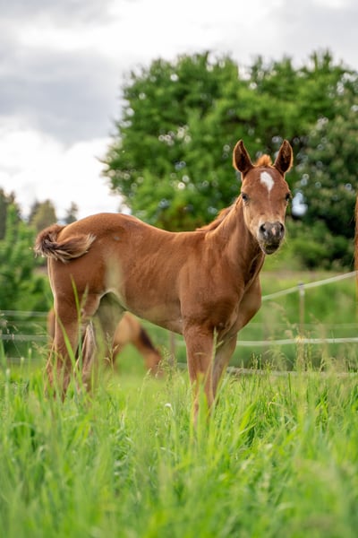 ***Reining Prospect*** Zum Verkauf steht eine wunderschöne American Quarter Horse Stute, geboren im Jahr 2024. Diese Dunkelfuchs-Stute besticht durch ihr elegantes Erscheinungsbild. Sie ist speziell für die Disziplin Reining gezüchtet und zeigt bereits in ihren natürlichen Bewegungen großes Talent. Ihre Eltern und Halbschwestern sind money Earner im Reiningsport. Wenn Sie auf der Suche nach einem vielversprechenden Nachwuchspferd sind, das sowohl durch sein Aussehen als auch durch seine Fähigkeiten überzeugt, dann ist diese Stute genau das Richtige für Sie. Eltern sind beide zu besichtigen und erfolgreich im Sport gelaufen. FANCY GUNWORK aka "Clara" ist zur Aufzucht in unserem Herdenverband. NRHA Germany und EURO eingezahlt. Entwurmt, Gechipt kennt das Fohlen ABC Bei Interesse oder weiteren Fragen freuen wir uns auf Ihre Kontaktaufnahme. Foto: portraits.and.horses Louisa Kaschubowski
