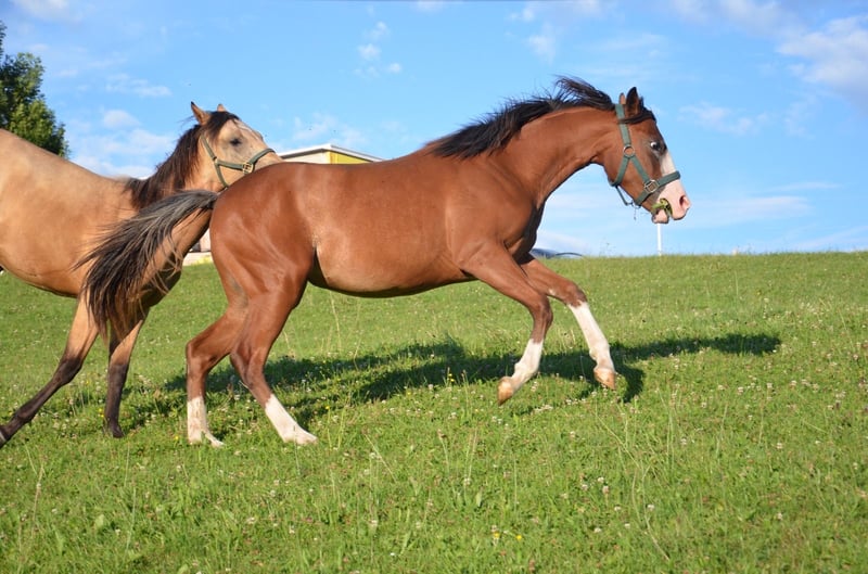 Nuestra Miny fue la más pequeña de la camada de 2024, pero compensó esto con un gran corazón. Está dispuesta a todo. Puede ser conducida sola desde el rebaño. Conoce la granja, las vacas, el remolque y al herrador. Está creciendo en un pequeño grupo con su amiga. Sus aires son increíblemente hermosos y también sería interesante para Ranch Riding.