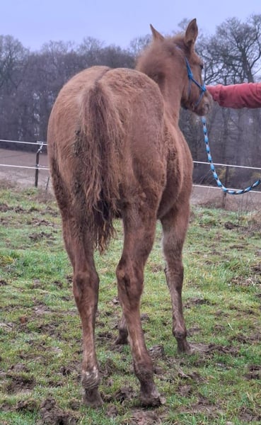 Sun O Lena Chexinic ist eine bildhübsche Quarter Horse Stute, geboren am 20.07.2025, mit einem geschätzten Endmaß von ca. 150 cm. Sie ist red dun und homozygot dun, die AQHA-Papiere liegen vor und sie ist in die DQHA einbezahlt. Die Stute überzeugt durch ihr korrektes Gebäude, ihre tolle Farbe, ihre gute Entwicklung und eine ausgewogene Bemuskelung. Sie ist gesund, regelmäßig entwurmt und wächst im Herdenverband auf. Tierarzt und Hufschmied sind ihr bekannt. 5-Panel n/n. Sie ist halfterführig und kennt das Fohlen-1×1. Charakterlich ist sie sehr lieb, menschenbezogen und brav im Umgang. Sie ist reaktionsstark, bringt ein tolles Temperament mit, ist sehr athletisch, möchte immer gefallen und lernt schnell, was sie zu einem spannenden Nachwuchspferd macht. Mit ihren in Europa seltenen Cutting-Pedigree ist sie ein erstklassiges Prospekt für Sport, Turnier und Zucht und sollte mit ihrem Potenzial für Cutting später unbedingt als Showpferd gefördert werden. Sie ist eine Enkelin von Doc O Lena und Bueno Chexinic. Eine junge Stute mit viel Qualität, Ausstrahlung und Leistungsbereitschaft, die sowohl für ambitionierte Reiter als auch für Züchter äußerst interessant ist.
