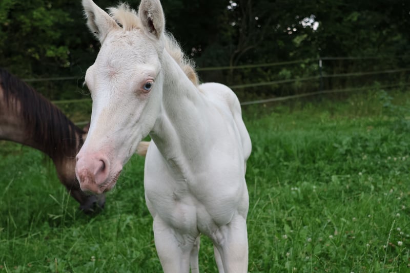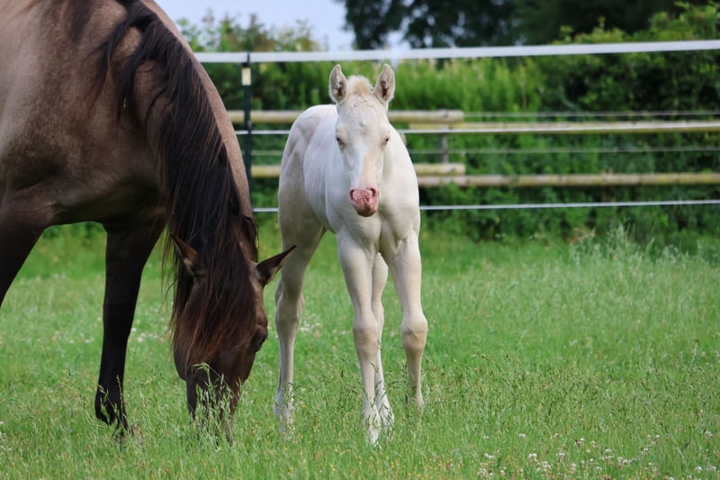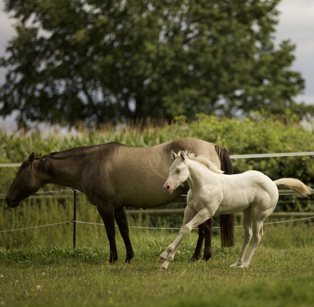 Foundation Quarter Horse Stutfohlen in seltener Traumfarbe! Sire: Shining C Amar Dam: Elly Blackburn 7 Panel n/n Ee aa DD CRCR SW1 - Smoky Cream Dun Splash (White Grullo) Manchmal steht einfach ein besonderes Fohlen auf der Weide und genau so eine kleine Schönheit ist Amari. Zum Verkauf steht ein außergewöhnlich typvolles Quarter Horse Stutfohlen in der seltenen Sonderfarbe Smoky Cream Dun Splash. Ein echter Hingucker mit Charme, Ausstrahlung und bestem Fundament! Amari vereint Korrektheit, Coolness und Genetik auf höchstem Niveau. Sie besticht durch ihr kräftiges Fundament, einen harmonischen Körperbau und ein ruhiges, menschenbezogenes Wesen. Ihre außergewöhnliche Farbgenetik macht sie nicht nur optisch zu einem Highlight, sondern auch zuchttechnisch besonders interessant. Sie liebt den Kontakt zum Menschen, lernt schnell und zeigt sich jetzt schon super cool und ausgeglichen. Sie erhält Papiere der AQHA sowie einen DQHA-Pass. Sie wächst artgerecht im Herdenverband auf, kennt das Fohlen-ABC beim Auszug und wird regelmäßig entwurmt, mit hochwertigen Mineralien versorgt und dem Hufschmied vorgestellt. Die letzten Bilder zeigen Ihre Eltern.