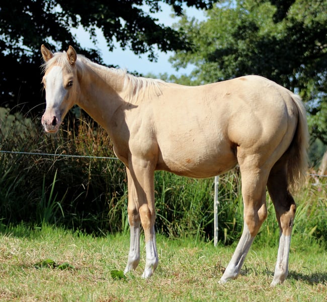 **For Sale: American Quarter Horse Mare** AQHA mare palomino splash born: 04/10/2025 PSSM N/N, GBED N/N, HERDA N/N, MH N/N, HYPP N/N, IMM N/N NRHA Germany SSP (paid up) Sire is TINKER WITH GUNS. He is a million-dollar sire ($1,254,000) and his lifetime earnings amount to $346,366. He was, among other achievements: 2012 NRHA Open Derby Co-Reserve Champion 2012 NRBC Open Derby Reserve Champion 2012 Cactus Reining Classic Open Derby Champion 2011 NRHA Open Derby Champion 2011 NRHA Futurity Shootout Champion 2011 NRBC Open Derby - 3rd Place 2011 NRBC Open Derby Prelim Champion 2011 Reining By The Bay Open Derby Champion 2011 Cactus Reining Classic Open Derby Champion 2011 NRHA #3 Open Reining Horse 2009 NRHA Open Futurity - 4th Place 2009 Scottsdale Classic Open Futurity Champion The dam of TINKER WITH ROSES is YELLOROSEOFTEXAS by GALLO DEL CIELO. GALLO DEL CIELO is an NRHA $4 Million Sire and NCHA Million Dollar Sire. His lifetime earnings are $28,437. His successes include NCHA Open Derby Finalist, Chisholm Trail Open Derby Finalist, Abilene Western Open Derby Finalist, and NRHA's #5 All-Time Leading Sire, Sire of Cutting, Reining, Reined Cow Horse Champions. Gallo Del Cielo is a full brother to Grays Starlight! For sale is a promising American Quarter Horse mare, born in 2025. With her striking palomino coat, broad white blaze, and a height of 151 cm, she is not only an eye-catcher but also a talented horse for reining due to her excellent pedigree. This young mare is characterized by her friendly and people-oriented nature. If you are interested or need further information, please feel free to contact me. Visit us and see for yourself this extraordinary mare! www.white-diamond-horses.de