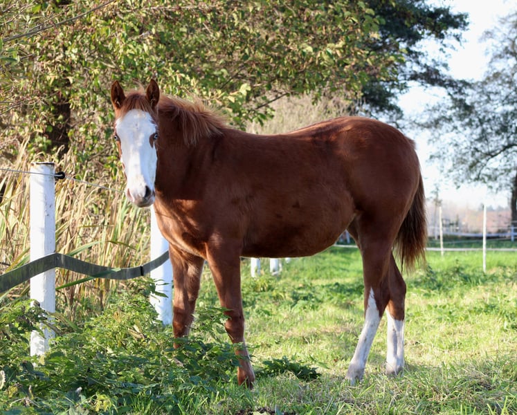 Prachtige Amerikaanse Quarter Horse merrie** Te koop staat een veelbelovende Amerikaanse Quarter Horse merrie, geboren in 2025, met een prachtige opvallende bles. Ze mag graag bij ons blijven voor verdere opfok (maandelijkse kosten voor onderdak en voer: €100). Wat vooral opvalt, is haar talent op het gebied van Reining. Ze toont nu al veel potentieel en is uitstekend geschikt voor ambitieuze ruiters die succesvol willen zijn in de westernsport. Haar evenwichtige temperament, haar mensgerichte karakter en haar leergierigheid maken haar tot een ideaal partner voor training en wedstrijden. Ze beschikt over een paardenpaspoort van de DQHA en een COR van de AQHA. Ze is regelmatig ontwormd en voorgesteld aan de hoefsmid. Bij interesse horen we graag van u om verdere informatie te verstrekken en een bezichtigingsafspraak te maken. www.white-diamond-horses.de