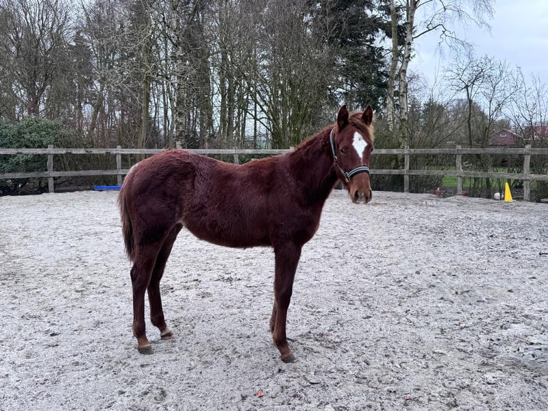 Shine Good ist eine bildhübsche American Quarter Horse Stute, geboren am 23.04.2025, in der Farbe Sorrel rabicano. Sie besitzt Papiere der American Quarter Horse Association (AQHA) und wird voraussichtlich ein Endmaß von ca. 152 cm erreichen. Die junge Stute überzeugt durch ihr korrektes Gebäude, ihre sehr gute Entwicklung und ihre ausgewogene Bemuskelung. Lyra ist gesund und wächst unter besten Bedingungen mit viel Liebe auf. Tierarzt und Hufschmied kennt sie bereits, sie ist regelmäßig geimpft und bestens im Umgang. Lyra lebt in Offenstallhaltung in einer gemischten Herde und wurde auf natürliche Weise abgesetzt. Sie ist halfterführig, kennt angebundenes Stehen beim Putzen und fährt brav im Anhänger mit ihrer Mutter. Das Fohlen-1×1 beherrscht sie zuverlässig. Charakterlich besticht Lyra durch ihre Menschenbezogenheit, ihre Neugier und Gelassenheit. Sie ist brav, altersgerecht verspielt, besitzt ein tolles Temperament und zeigt sich sehr gelehrig und aufgeschlossen. Ihr liebevolles Wesen macht sie zu einem echten Nachwuchspferd mit Potenzial. Durch ihre Allround- und Reining-Abstammung eignet sie sich sowohl als zukünftiges Showpferd als auch als zuverlässiger Freizeitpartner. Mit ihrem Charakter aus Gold ist Shine Good ein echtes Versprechen für die Zukunft. Die Abgabe erfolgt direkt vom Züchter und ausschließlich in allerbeste Hände.