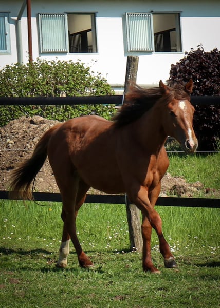 A Dream Of Mechanic - erstklassige Quarter Horse Stute, 3.24 geboren mit einem geschätzten Endmaß von 160 bis 163 cm, für den Einsatz im Pleasure/Allroundbereich oder als liebevoller Freizeitbegleiter. Ellie ist eine ganz wundervolle Jungstute, die nicht nur durch ihren Charakter (lieb, gelassen, freundlich, zutraulich) punktet, sondern ebenfalls durch einen korrekten Körperbau, gute Bewegungen und eine erstklassige Abstammung. Sie lebt mit aktuell 3 gleichaltrigen Stuten im Offenstall. Die Stute wird mit bestem Kraft- und Mineralfutter (Pavo Junior und Megabase) groß gezogen, hat rund um die Uhr Heu und Stroh zur freien Verfügung und viel Platz im Offenstall mit angrenzender Wiese, um sich ausreichend zu bewegen. Sie hat täglich Kontakt zu Menschen, lässt sich führen und putzen, kennt es, die Beine geduscht zu bekommen und kennt alle Fahrzeuge/Arbeiten/Geräusche des Stallalltags plus der Baustelle am Stall. Selbstverständlich wurde sie regelmäßig entwurmt, dem Schmied vorgestellt und ist bereits gegen Influenza, Tetanus und Herpes grundimmunisiert. Ist bei der DQHA Futurity und im EWU Jungpferdeprogramm einbezahlt. Über die Elterntiere ist sie 6-Panel negativ. Ihr Vater ist ein vielversprechender Junghengst von dem erfolgreich geshowten Mechanic (World Champion Pleasure, Hight Paint Western Pleasure Hengst). Ellies Mutter ist Invitation Only/ Certain Potential gezogen. Aufgrund von Bestandsreduzierung sucht diese tolle Jungstute ein förderndes Zuhause.