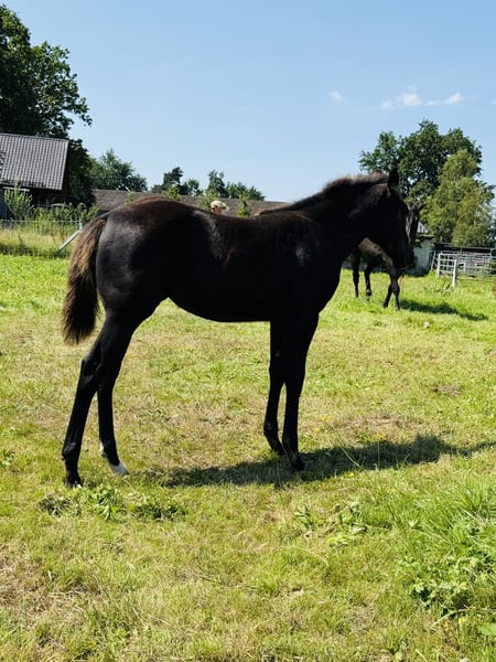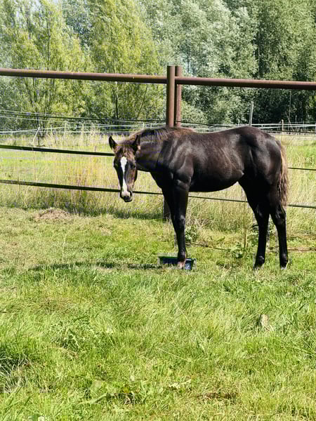 Fine was born on April 30, 2025. She is very confident and extremely curious. She is easy to handle and remains calm and self-assured even in traffic. She also handles trailer loading perfectly. Very well-behaved when visiting the farrier. Regularly dewormed and vaccinated. Her parents are friendly horses, both 100% reliable in the field. Fine’s sire, Gino, is very successful in competitive sport. Her dam also had a successful career in show jumping. Fine’s grandparents are all former successful competition horses, each with an outstanding character. Premium foal, grade 1a! Qualified for the Bundeschampionat (though they did not attend). She has a passport and AQHA papers. Rehoming due to relocation. She has been off the track since the end of September and can move directly to her new home. Price: €5,500 negotiable
