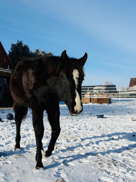Fine nació el 30 de abril de 2025. Es una yegua muy segura de sí misma y muy curiosa. Se deja manejar muy bien, incluso en el tráfico urbano, donde se muestra muy confiada. También domina perfectamente el transporte en remolque. Es muy tranquila en la herrería. Está regularmente desparasitada y vacunada. Sus padres son caballos muy sociables, ambos completamente fiables en el campo. El padre de Fine, Gino, compite con mucho éxito en concursos. Su madre también tuvo una carrera exitosa en el deporte de competición. Los abuelos de Fine son todos antiguos caballos de concurso con un carácter excepcionalmente maravilloso. Fino fue premiada con la calificación 1a como potro de calidad. ¡Cualificada para el Campeonato Federal! (aunque no fue llevada allí). Tiene pasaporte y papeles AQHA. Se entrega por cambio de residencia. Desde finales de septiembre está en descanso, por lo que puede mudarse directamente a su nuevo hogar. Precio: 5.500 € VB